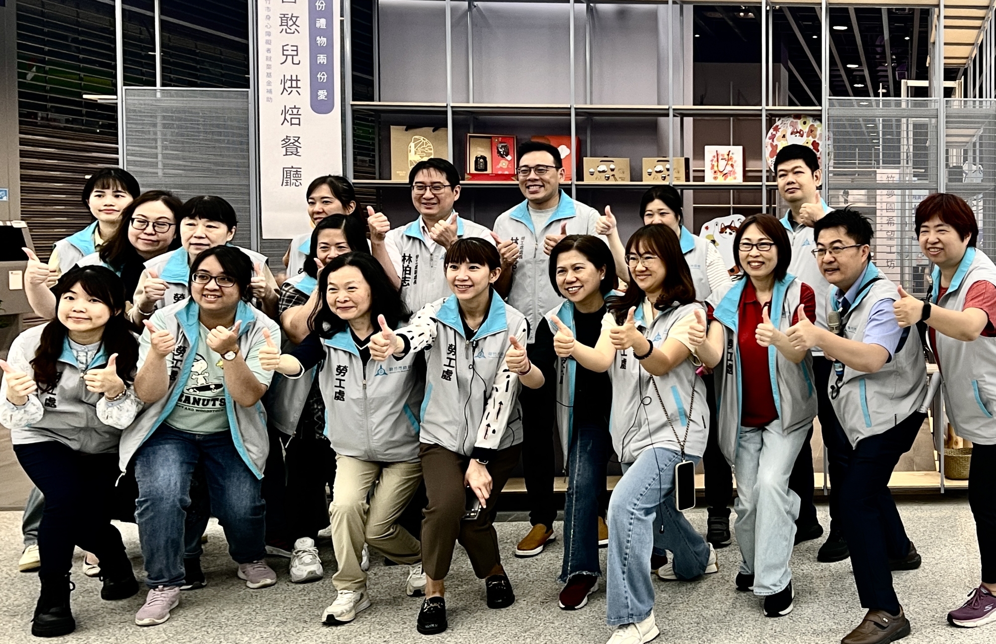 林昱志(前左四)帶領勞工處團隊展現服務活力 何高祿攝