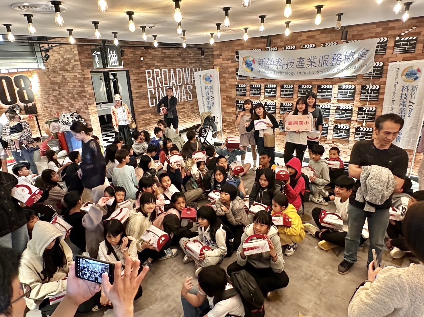 4日(六)新竹科技產業服務協會,在上午9:30於新竹縣竹北市百老匯影城,舉辦關懷學童公益電影欣賞,貼心準備餐點、爆米花、飲料等,迎接到場欣賞電影的小朋友們,同時財團法人普天宮也發放民生物資,做為幸福洋溢的伴手禮。