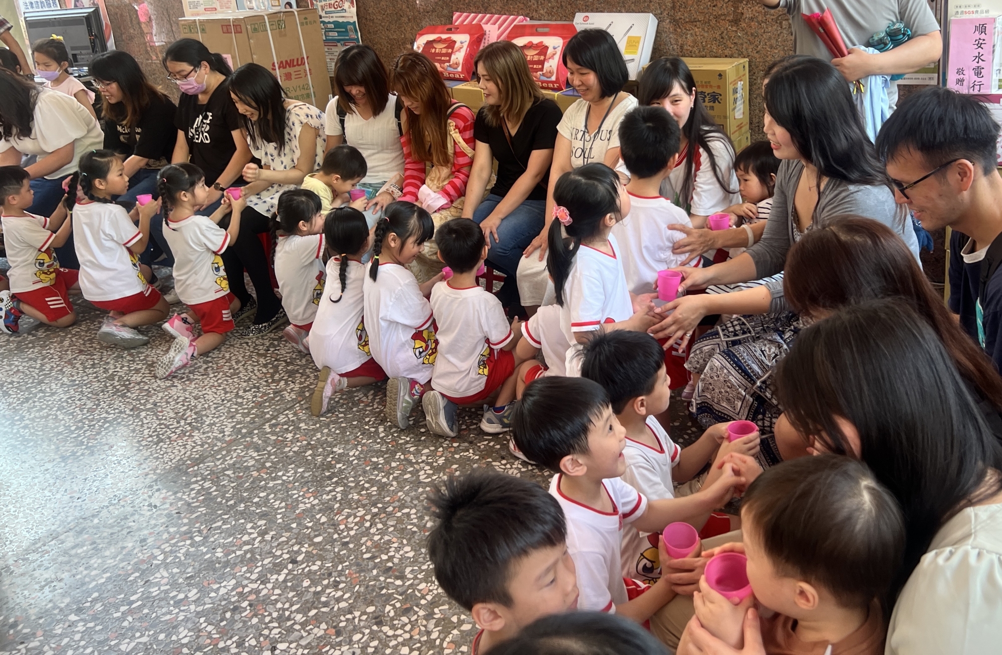 小朋友禮跪雙手奉茶給媽媽 何高祿攝