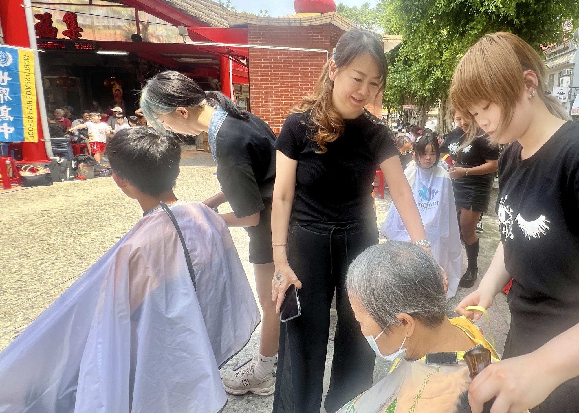 世界高中老師施雨辰(中)帶領同學義剪 何高祿攝