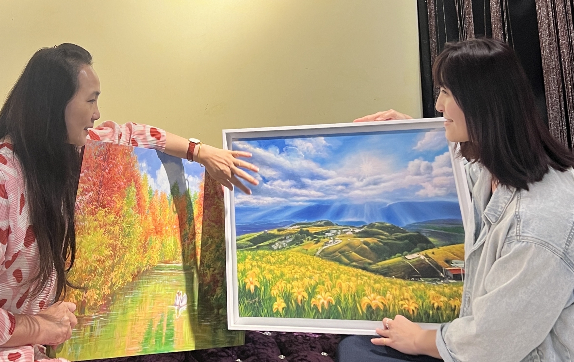 她的每一幅創作都有自己的故事,希望觀畫者心情充滿愉悅,能得到心靈的寧靜,期望能將動人的美景事物及感悟,透過具象印象或抽象等繪畫的呈現方式與大家分享,能為您的空間帶來溫度及人文氣息。