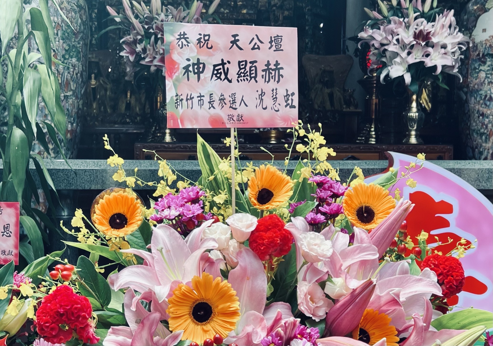 13日上午10點左右,下屆新竹市長參選人「雙虹」到天公壇祭天,民眾黨新竹市長參選人高虹安與民進黨參選人沈慧虹,選擇“半年節”農曆六月十五往天公壇上香,請天公伯保佑順利當選。雙方人馬不期而遇,出將、入相,楚河漢界各走各的,「無風、無雨,也無晴」,沒有對抗,也沒有問候。