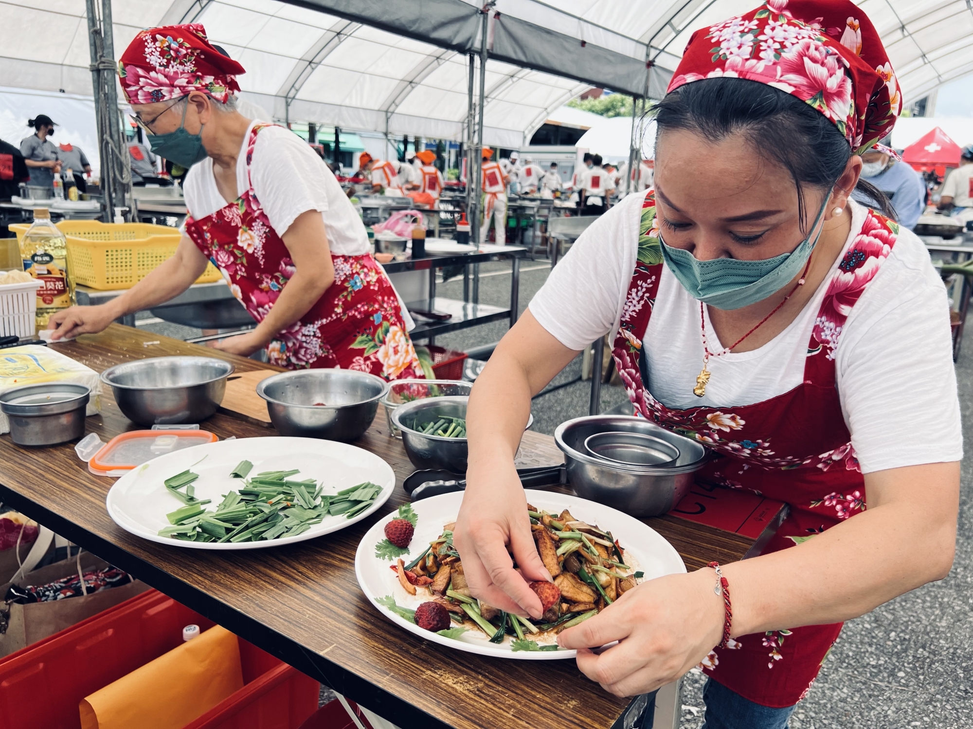 黃美蘭(右)服裝造形和客家小炒競賽表裏如一風味 何高祿攝