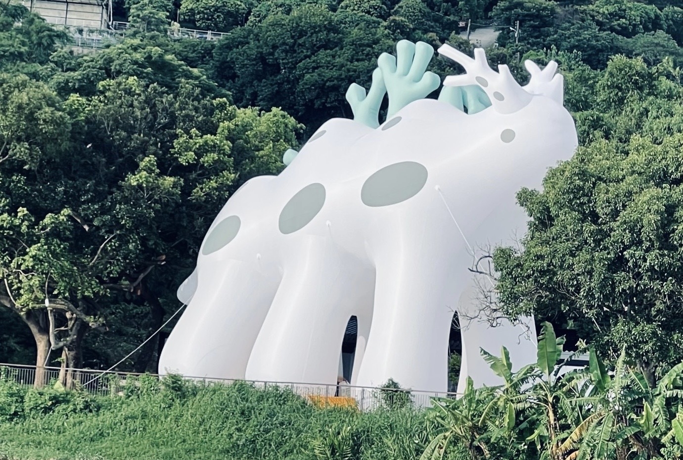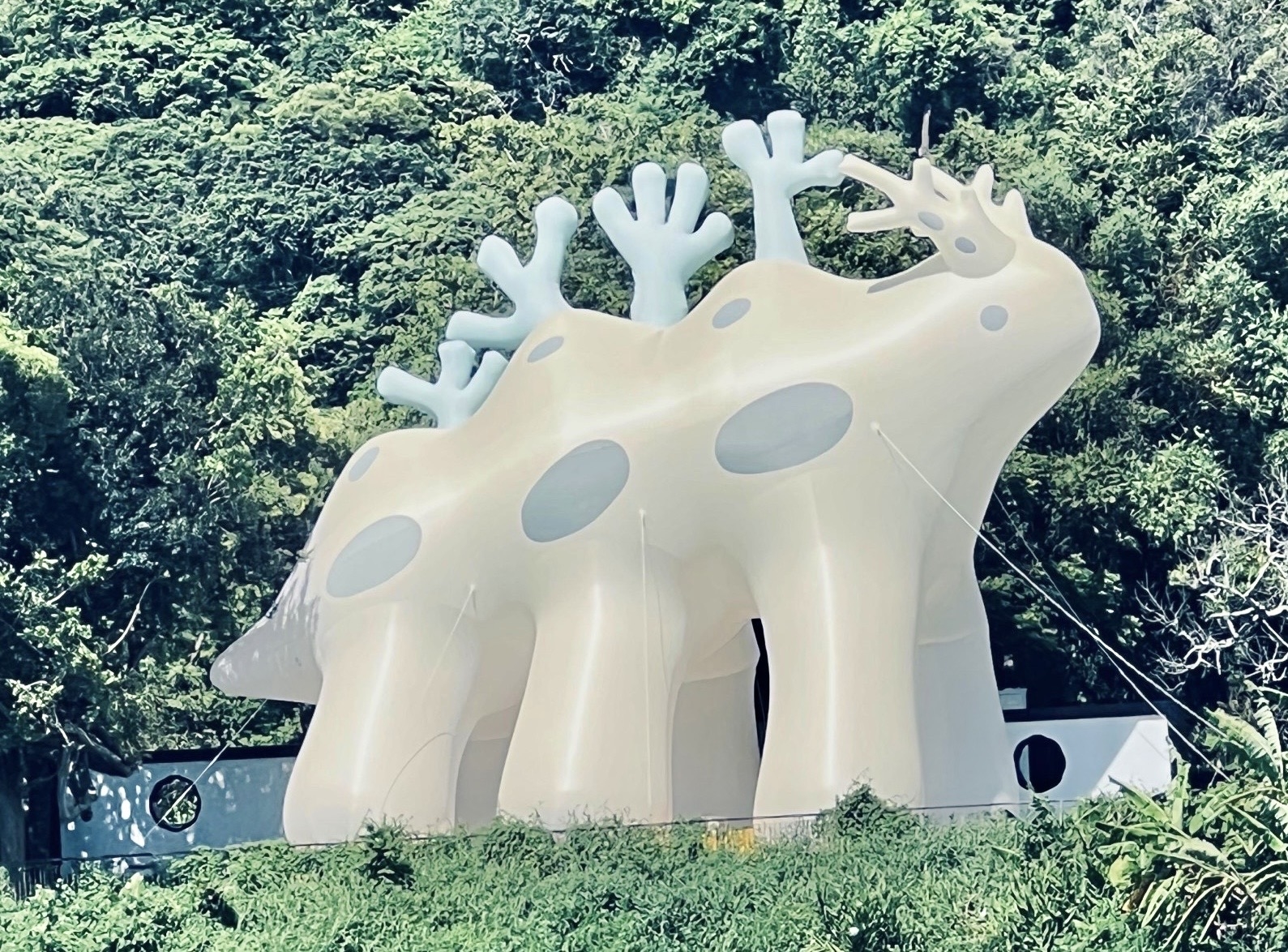 青草湖造型動物難挨烈日摧殘由上圖白色轉紫色 何高祿攝