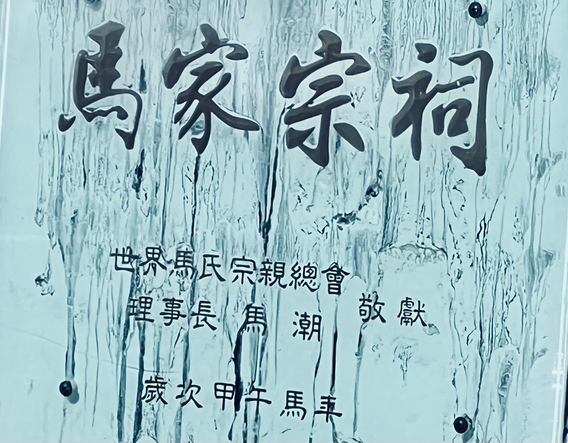 馬家庄祠堂門牆上有塊世界馬氏宗親總會馬年獻宗祠石牌 何高祿攝.