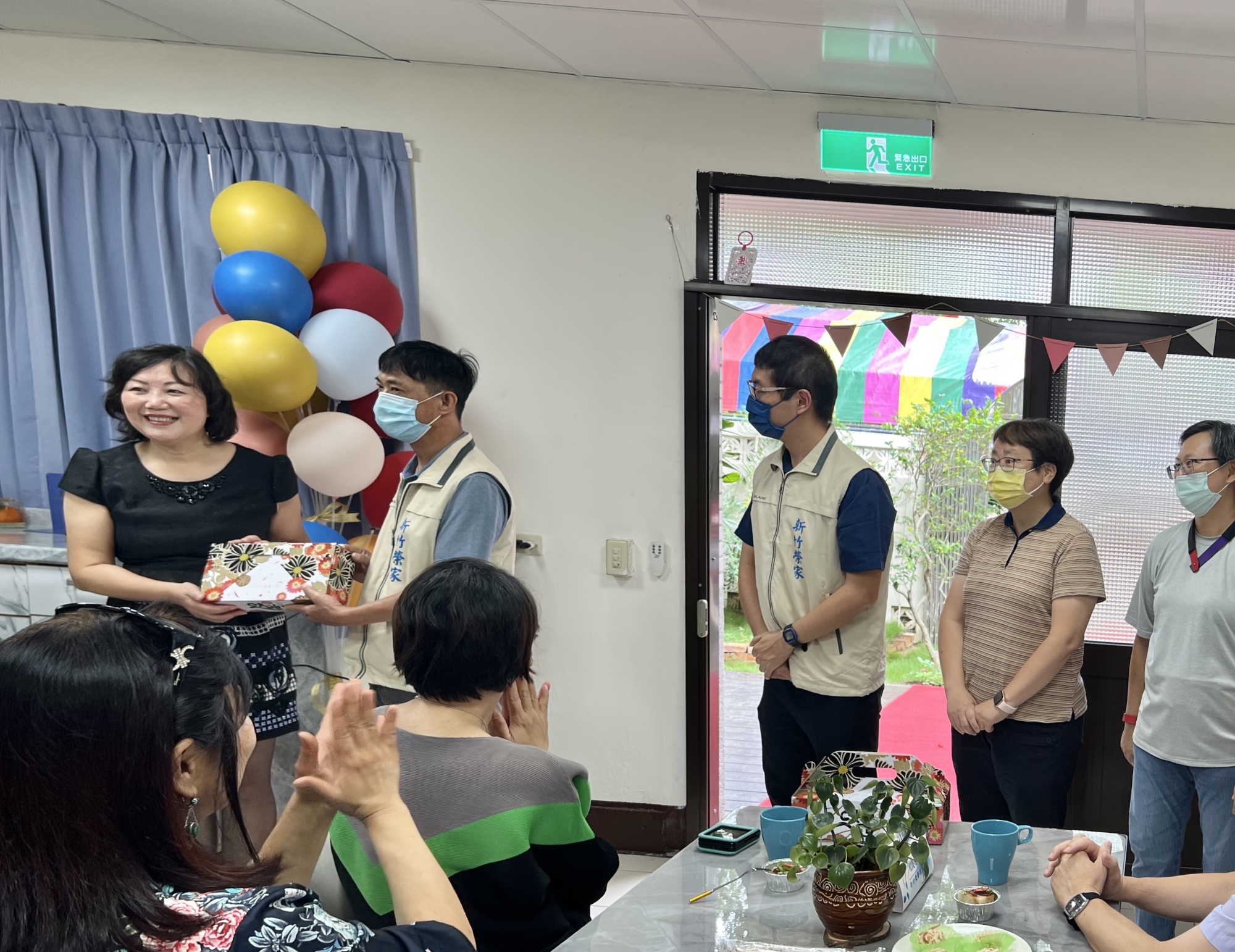 新竹榮家邀請貴賓們體驗VR、Switch、40赫茲聲光芳療,品嚐咖啡及茶點,並參觀去年為貢獻大愛慷慨捐獻住民設置的詠恩樹,以及展現豐碩成果與住民幸福生活實況的時光憶廊,貴賓們對榮家團隊用心於照護長輩身心靈全方位需求深表讚許,更直言榮家現在的軟硬體不輸外面的長照機構,甚至更好。恰逢榮家5月份住民慶生餐會,白主任邀請貴賓參加,一同向壽星住民祝福賀壽。