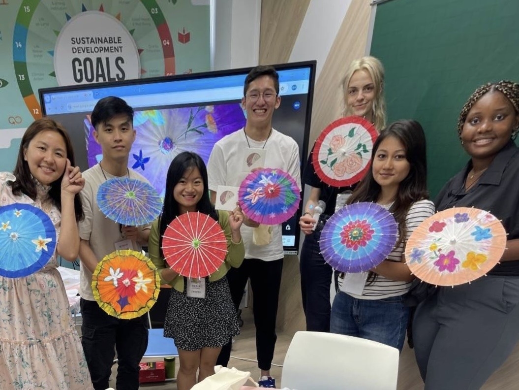 竹北義民高中結合在地特色發展國際教育課程,透過教育部113學年度大手牽小手計畫,邀請中央大學國際生入校交流,兩校國際交流課程為「客家紙傘彩繪」,義民高中學子預先將客家紙傘彩繪的步驟翻譯成英文,再手把手帶著中央大學、元培醫事科大國際生體驗,促成這場客家紙傘彩繪跨文化的交流。