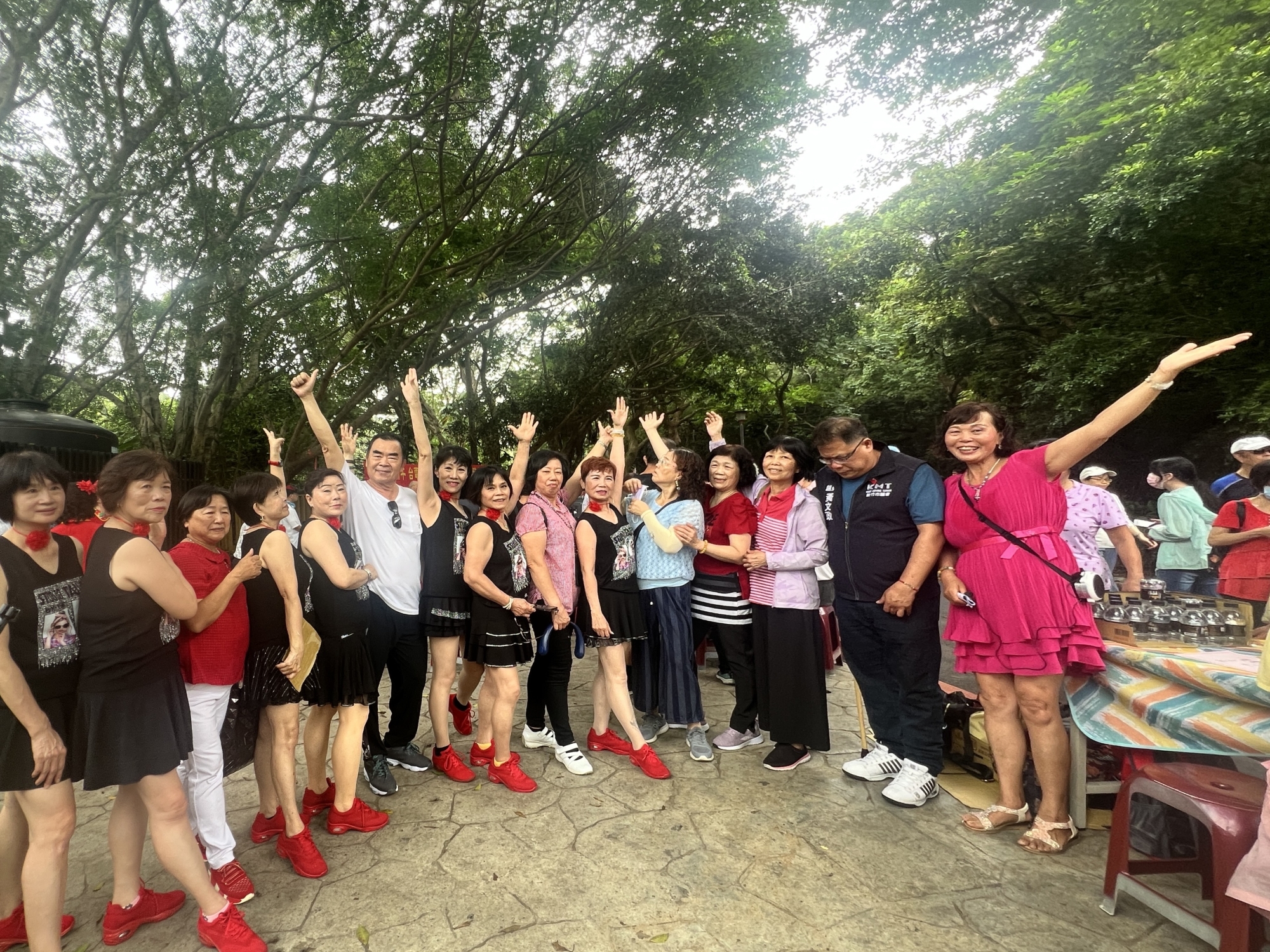 工藝師許源榮(左六)為虎山社區華江跳跳舞逗陣 何高祿攝