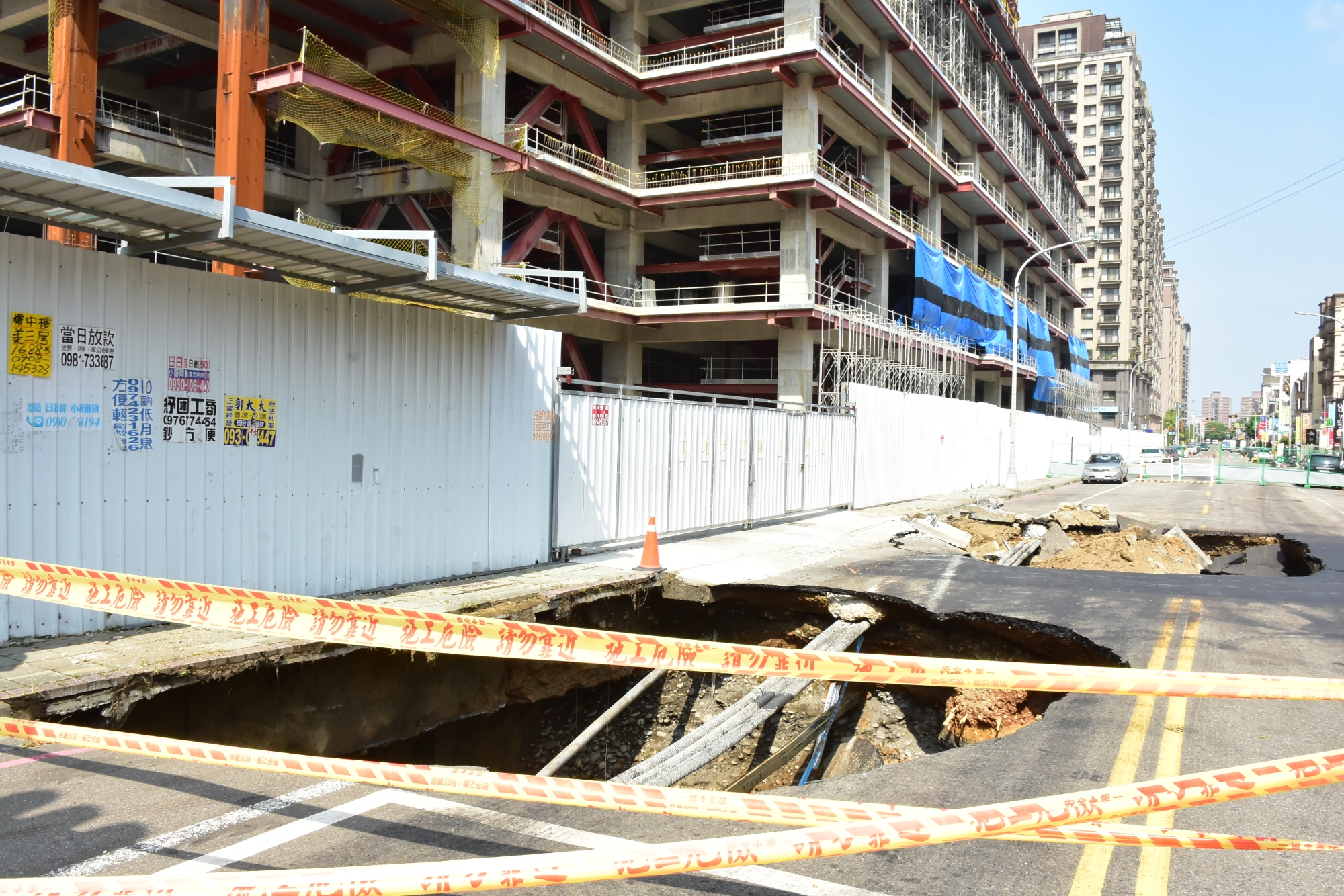 新竹縣竹北市「豐采520」建案工程,繼6月間發生勝利二路道路塌陷後,31日夜晚勝利二路相同位置再度塌陷2個長約6公尺的大坑,初步研判是地基嚴重流失,其中一個坑深度更逾3公尺,埋設於道路下方的管線因此暴露在外,更造成一輛路邊停放的小貨車掉落坑中,無人傷亡。