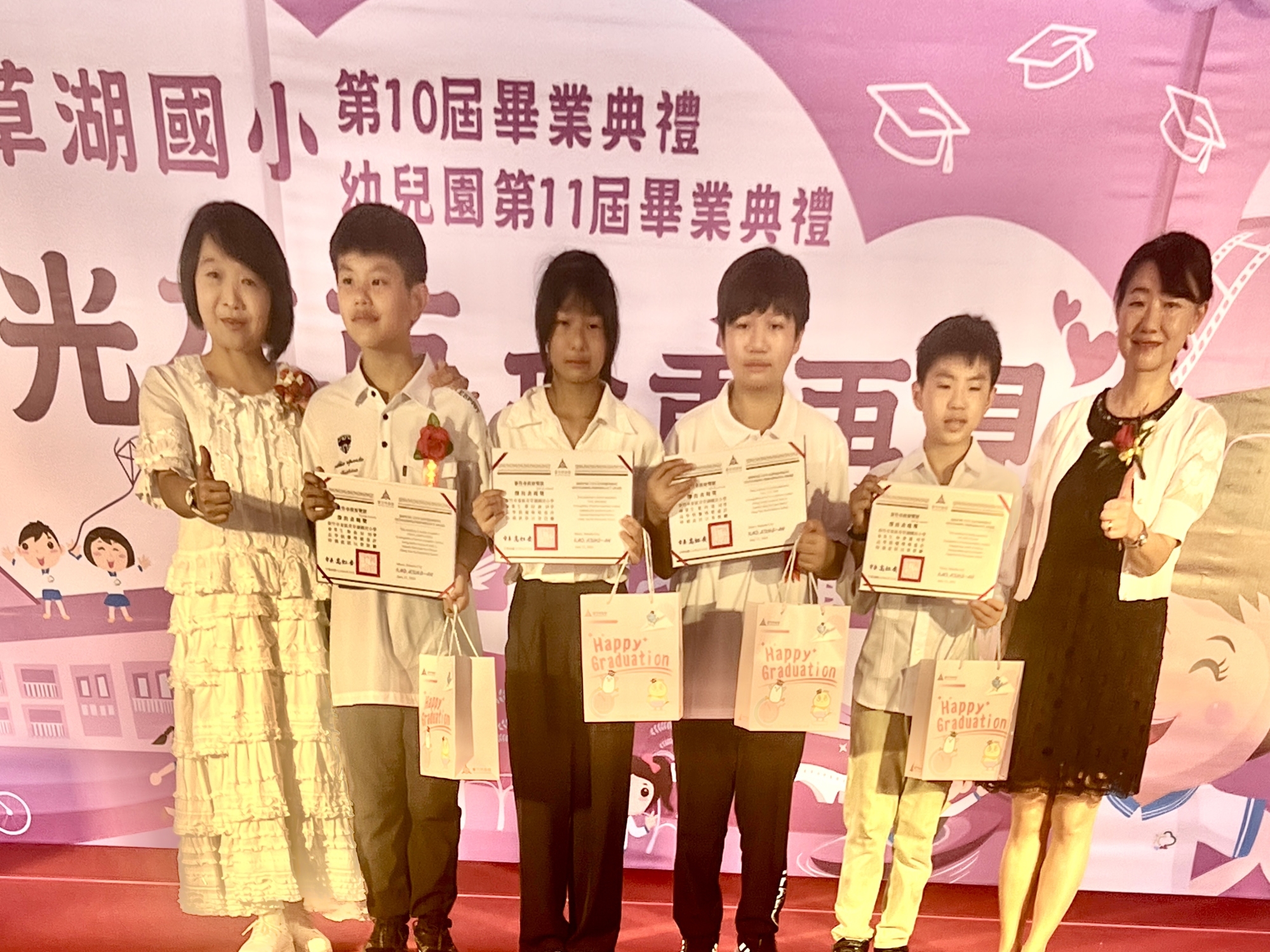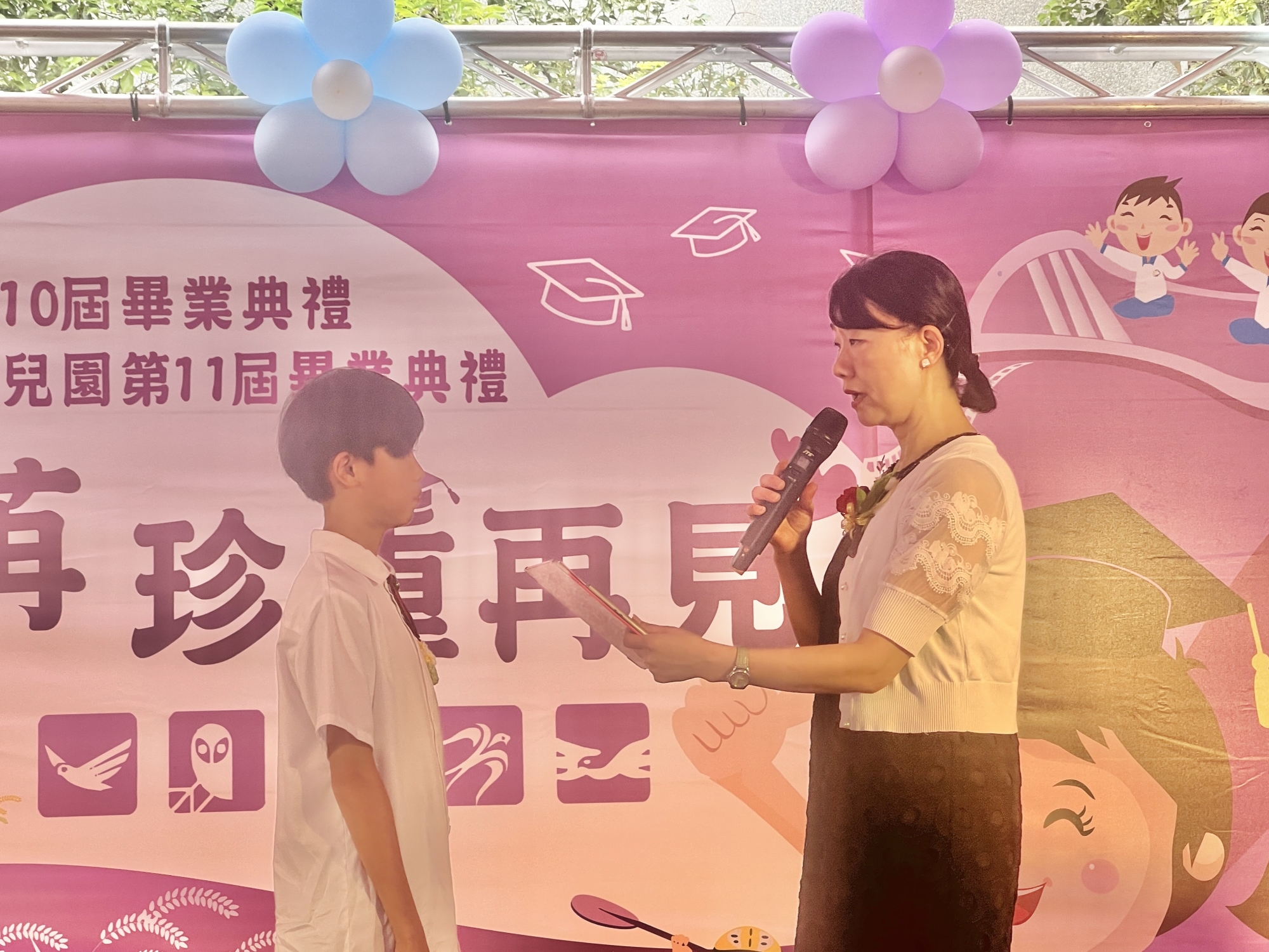 青草湖國小家長會長陳鐸震說,謝謝各位貴賓今日蒞臨青草湖國小,給予我們滿滿的祝福和鼓勵,使得畢業典禮更加溫馨隆重。