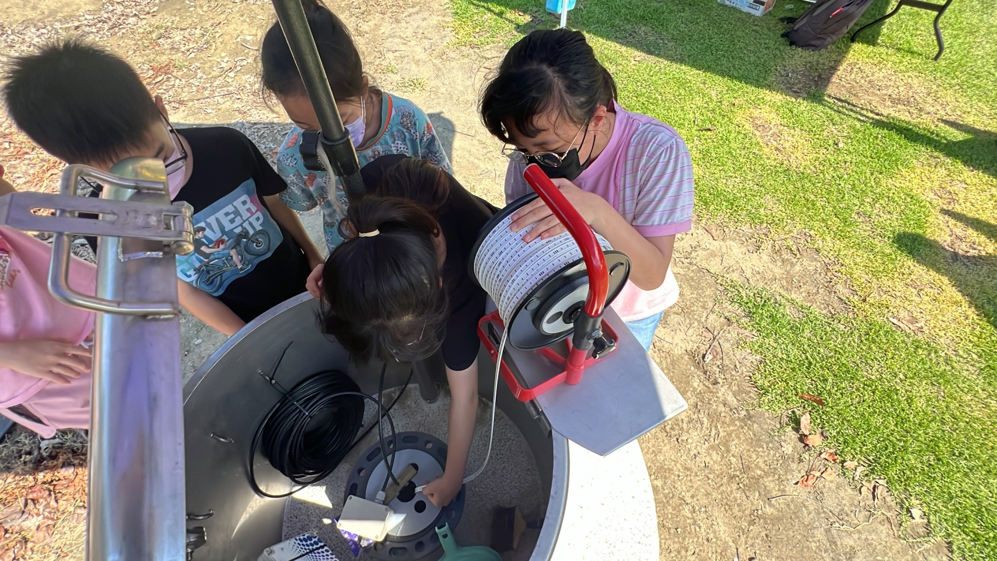 地下水井井體攝影檢測如同人體內視鏡檢查,清晰可見的影像讓參加的學員,與老師學生們看到,原來地下水井可以藉由檢測儀器清楚的看到地面下100公尺地下水流動狀況。