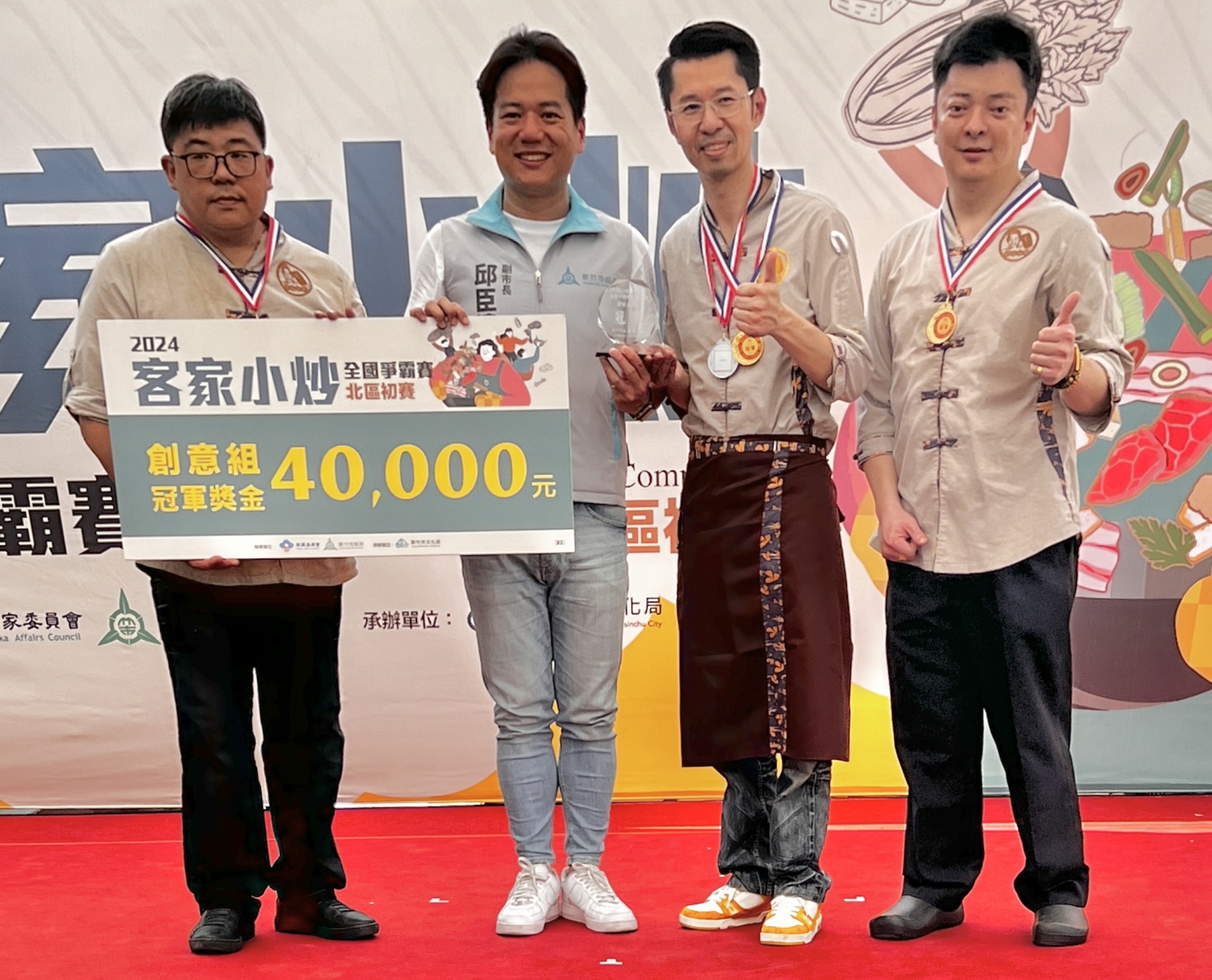 二、「創意風味客家小炒組」:冠軍為「海瑞摃丸」、亞軍「福容大飯店桃園」、季軍「晶宴中和館」、創意組佳作獎「南村|私廚‧小酒館」及「龍軒傳承海鮮餐廳」。