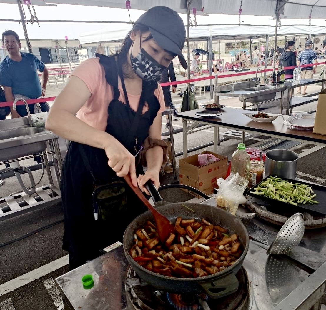 2024客家小炒全國爭霸賽北區初賽,今(20)日於新竹市體育館前廣場點火開炒,在烈日火傘高掛助勢下,揮汗翻炒競爭激烈。