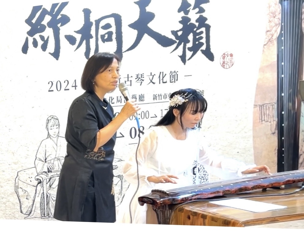 來自竹北古琴老師鄭宇訸,師承古琴名師葛瀚聰弟子王青澄老師,學習古琴經歷10多年,致力於古琴推廣教育。她說,古琴音域寬廣,音色深沉,餘音悠遠,希望能夠讓更多的人認識古琴之美。