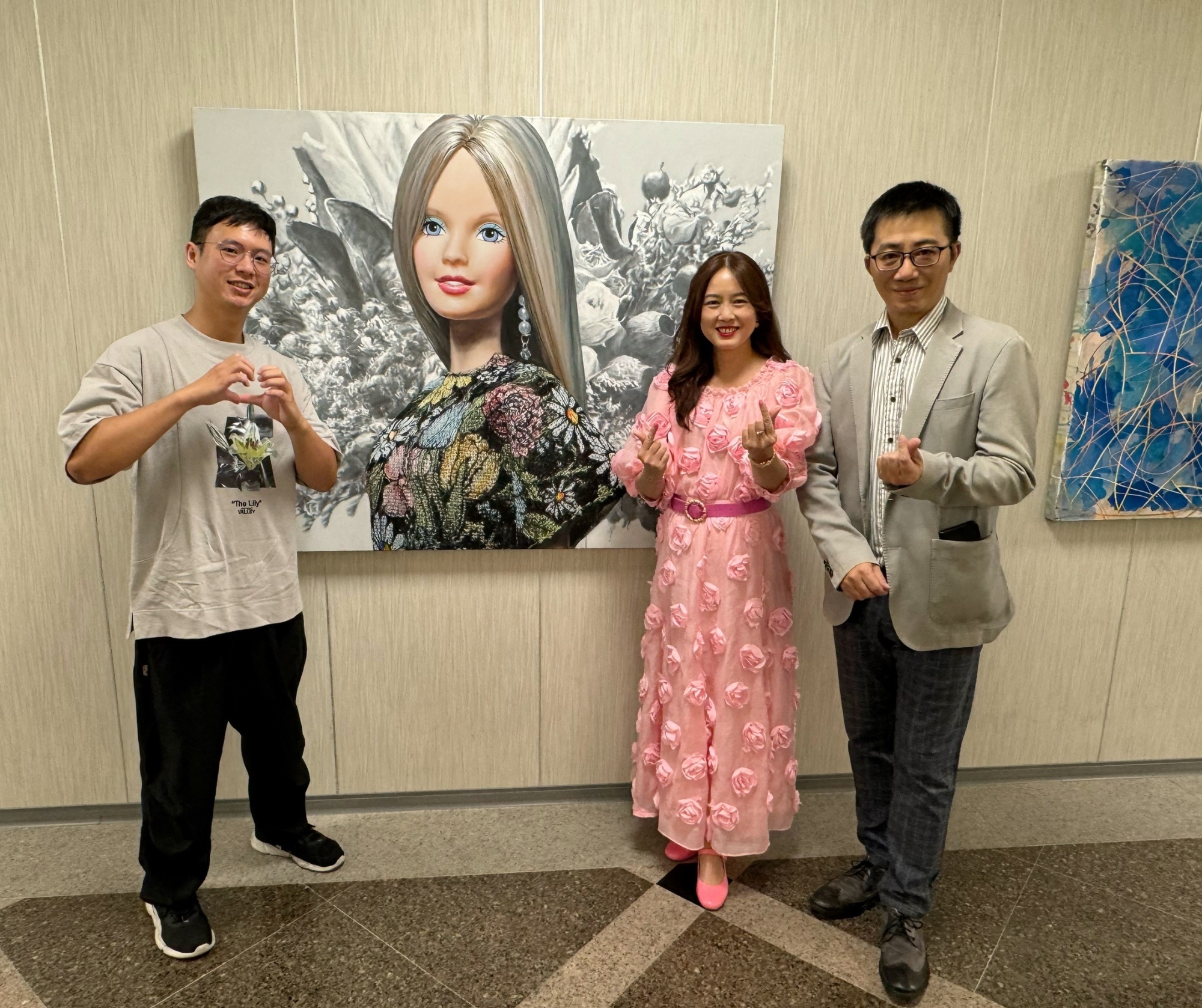 左起莊道明、張宜真和陳昭賢藝術交流 圖∕中醫大新竹醫院