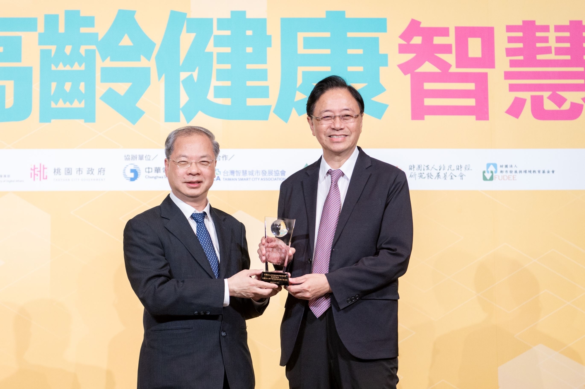 張善政強調,這份榮耀屬於桃園市府團隊,除了感謝主辦單位的肯定,也感謝市府同仁用心推動智慧桃園政策,共同為桃園城市發展而努力。