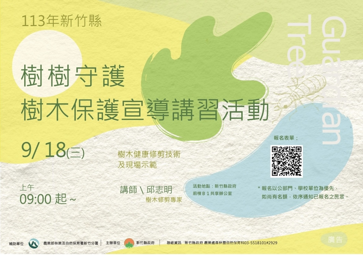 避免類似情況,除了請相關執行人員參酌,林業及自然保育署編定的「景觀樹木修剪作業指引」,新竹縣政府訂定的「新竹縣景觀樹木修剪及移植作業規範」等作業規範,作為公共工程園藝景觀修剪作業遵循指引依據及參酌外,也藉由辦理樹木健康及保育綠化講座,提供民眾、公部門人員、修剪樹木從業人員改善都市景觀環境、樹木保育的知識。