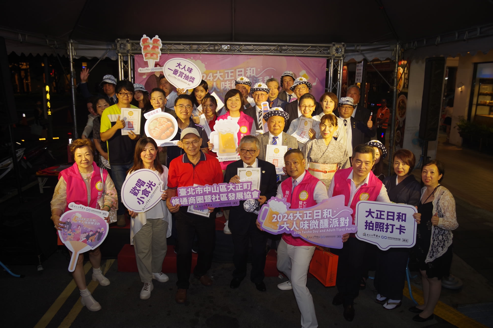 臺北市商業處與經濟部商發署輔導臺北市中山區大正町條通商圈暨社區發展協會為條通商圈於14日舉辦「2024大正日和,大人味微醺派對」,這是一場專為成人設計的浪漫派對,雖說下起陣雨,仍讓參加的民眾不減熱情沉浸於美食與音樂的氛圍中。