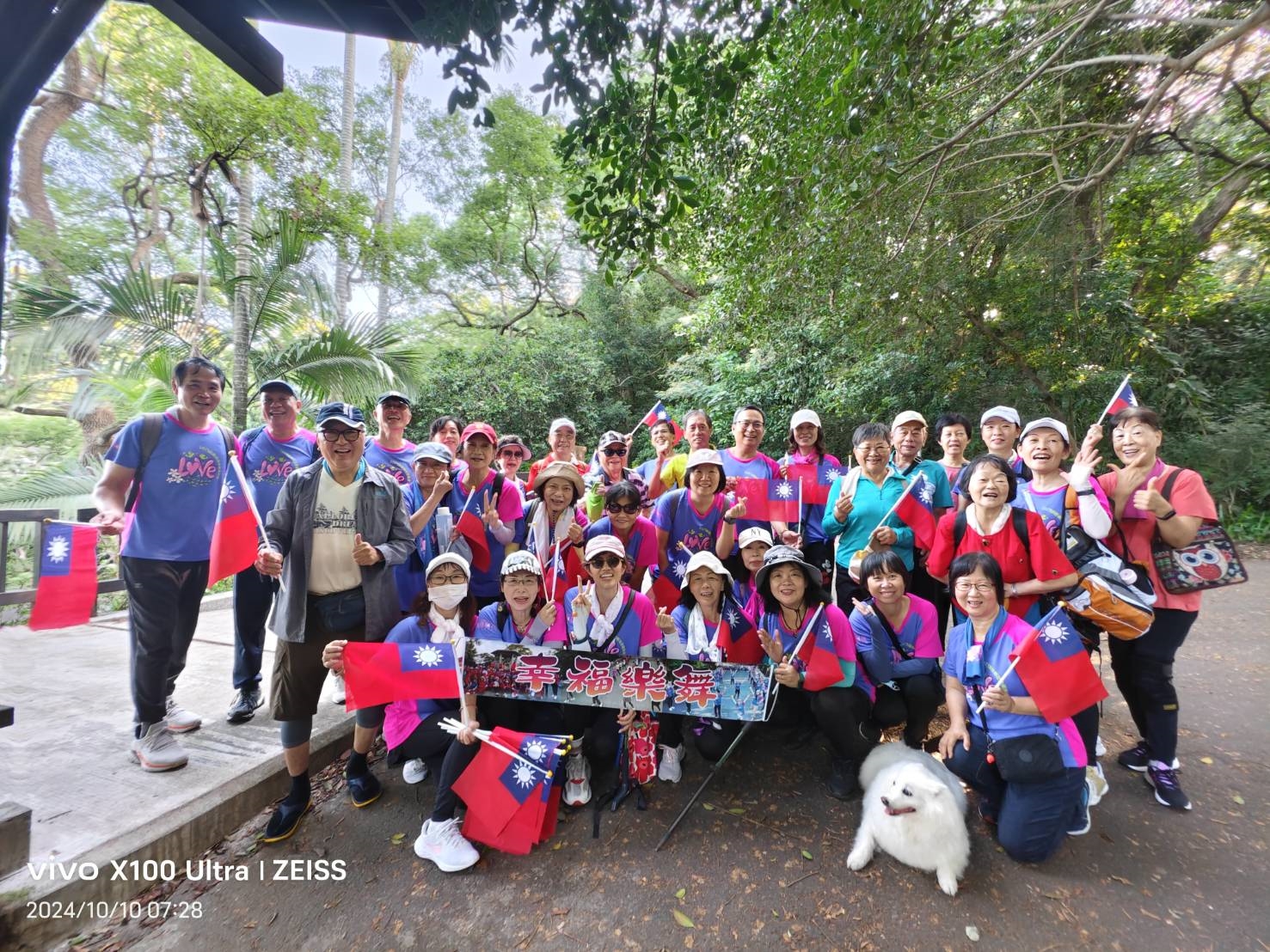 新竹市名牙醫朱筑勝十日登山慢走,發現自發性慶祝國慶聚會,熱鬧為國家慶生,感到相當珍貴,激起共鳴熱忱。
