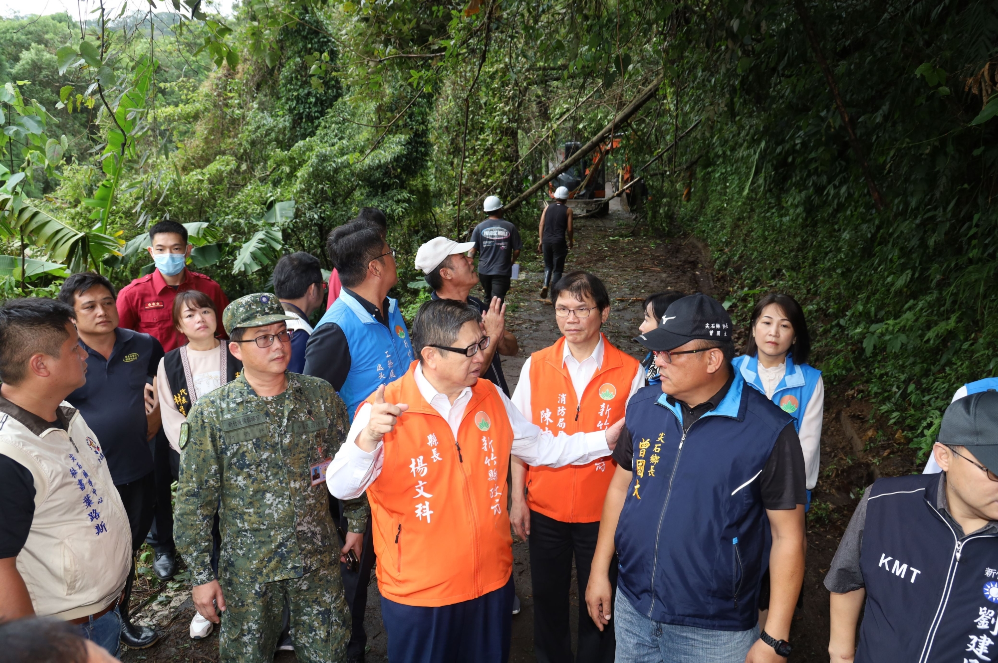 康芮颱風過境,新竹縣山區道路多處出現落石,縣府與各單位合作持續全力搶通,新竹縣長楊文科今(1日)上午前往尖石鄉衛生所、梅花國小及竹59義梅道路關心居民及道路搶修情形。