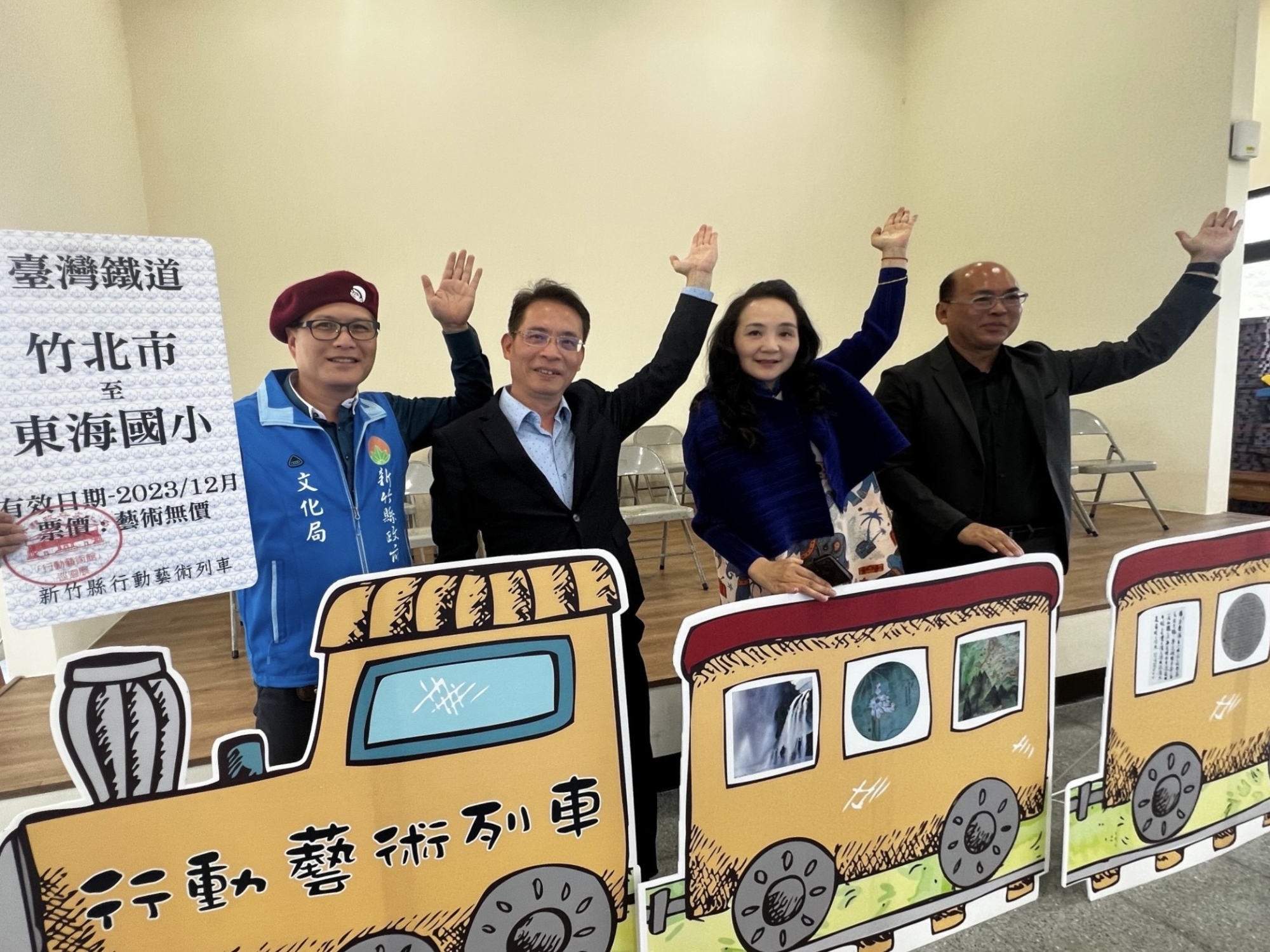 彭碧鈴(右二)和廖志崑(左二)以藝術列車在東海國小播種 何致遠攝