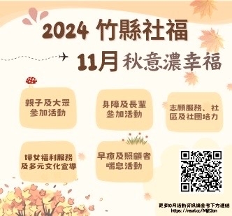 天涼好個chill!新竹縣政府11月推出社福系列活動,從親子同樂的客家粢粑DIY,到溫馨感人的身障楷模表揚,再到熱鬧非凡的國際移民日嘉年華,將近50場豐富多元、精采可期的活動,縣長楊文科歡迎大朋友小朋友共襄盛舉,感受滿滿的社福溫度!