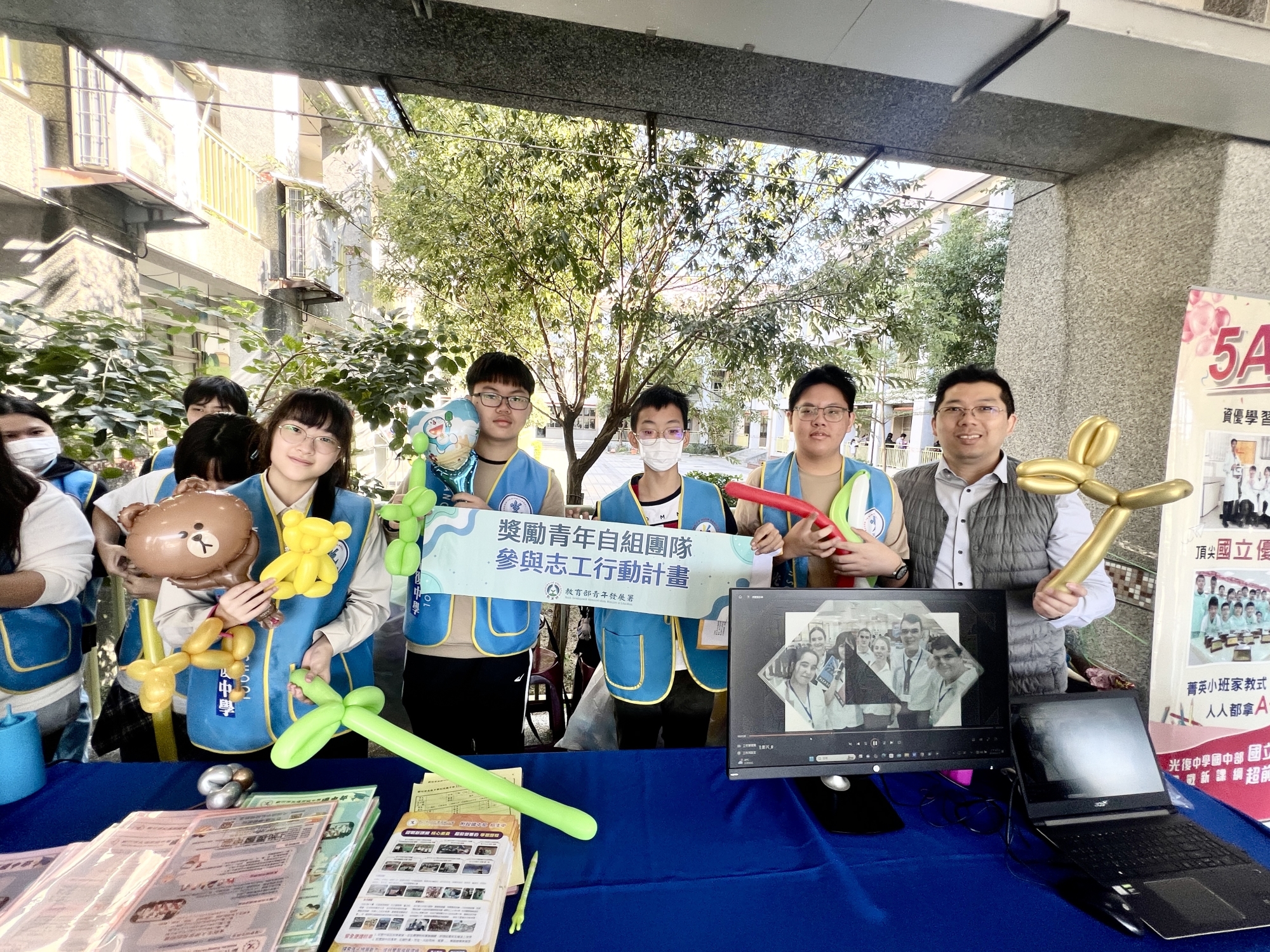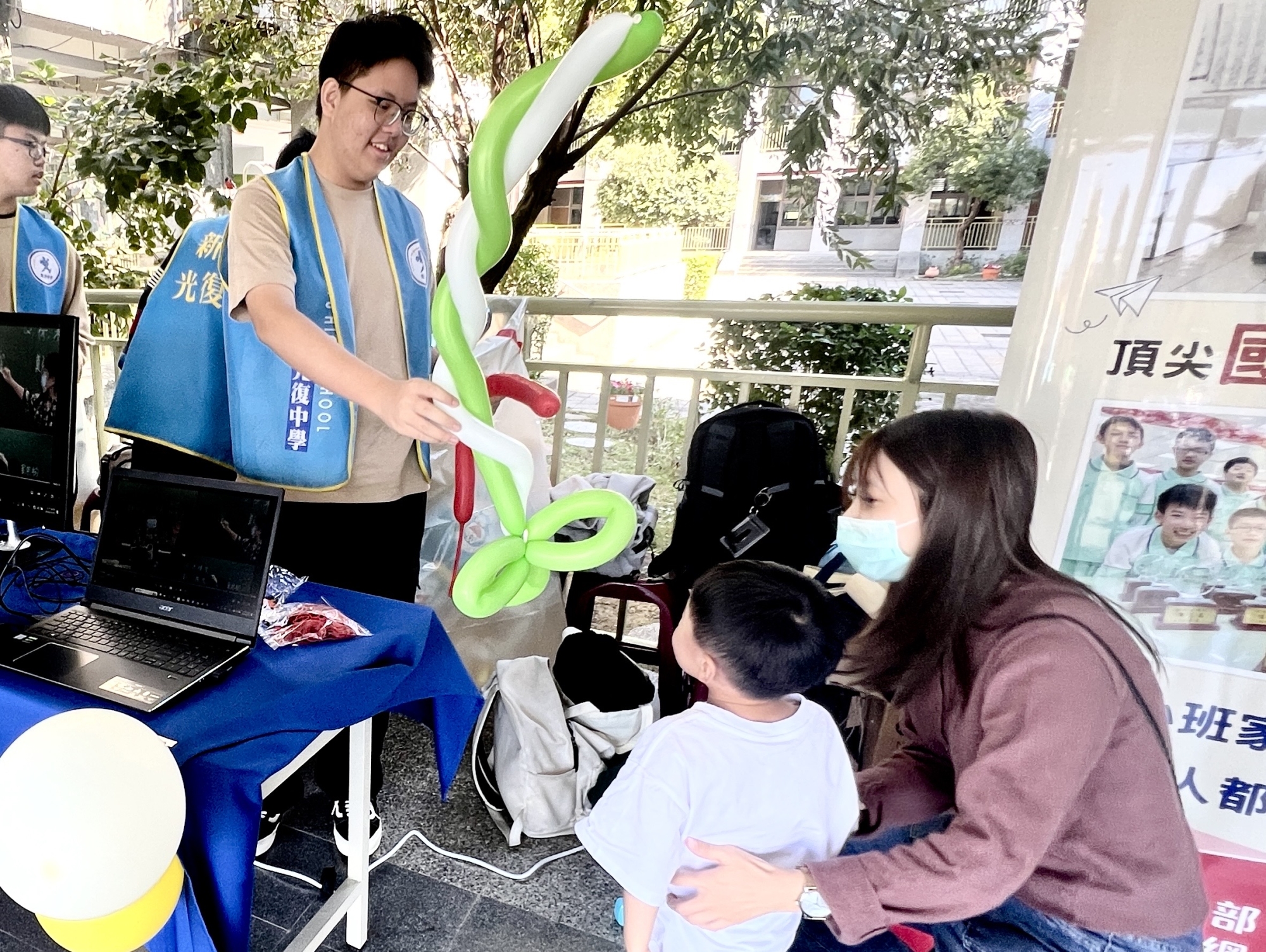 新竹市光復中學的同學,在透過學長姊的志工服務分享,得知他們曾前往青草湖國小完成窩心志工服務,規劃投入青草湖國小的校慶知能服務,製作有趣的造型氣球,發放給師生與參觀校慶的民眾。