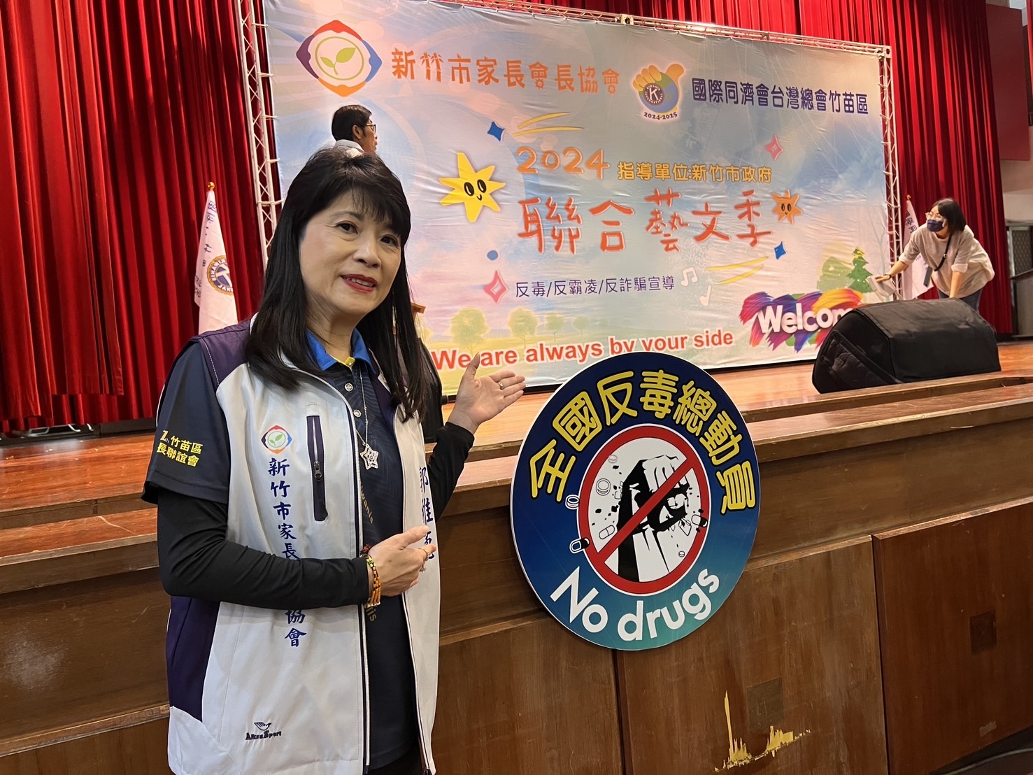 2024聯合藝文季今天在新竹實驗中學登場,這場由國際同濟會台灣總會竹苗區首辦的藝文活動,洞燭機先,將反霸凌、校園反毒列為活動主軸之一,區主席郭雅蕙強調,這些都是品格教育重要一環,環環相扣,才能教導出品格健全的學生。