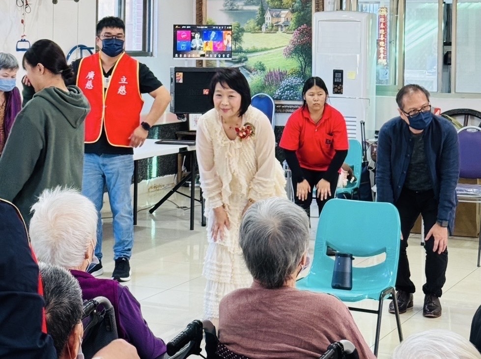 施雪紅被譽為白雪公主紅老師,她幽默的介紹自己的母校,讓老人家們笑開懷⋯⋯非常的吸睛,再來由莊主任帶領著學生們一起和老人家們做運動老人們竟然有人感動到哭了,運動完並和學生們帶著老人家做流動畫,另旁邊還有益智遊戲,還有一些老人喊著說:我贏了我贏了,這就是雪紅老師,為什麼為自己的母校籌備這兩場非常有意義活動的目的,在非常溫馨氛圍下,老人們拿著他們所畫的作品開心的和育英醫專的所有人員合照留念。