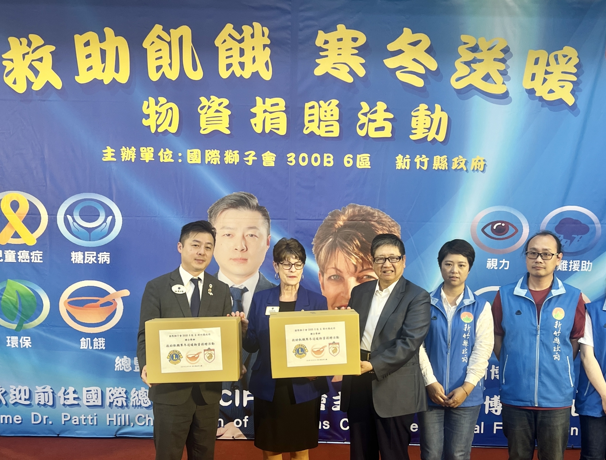 新竹縣長楊文科表示,感謝前任國際總會長、LCIF基金會主席Dr. Patti Hill蒞臨見證捐贈活動,歲末寒冬時收到這些愛心物資非常溫暖,將陸續送至縣內120戶弱勢家庭。他同時很佩服LCIF基金會主席Dr. Patti Hill,其擔任國際總會長時,在國際上做了許多捐贈公益,非常了不起。