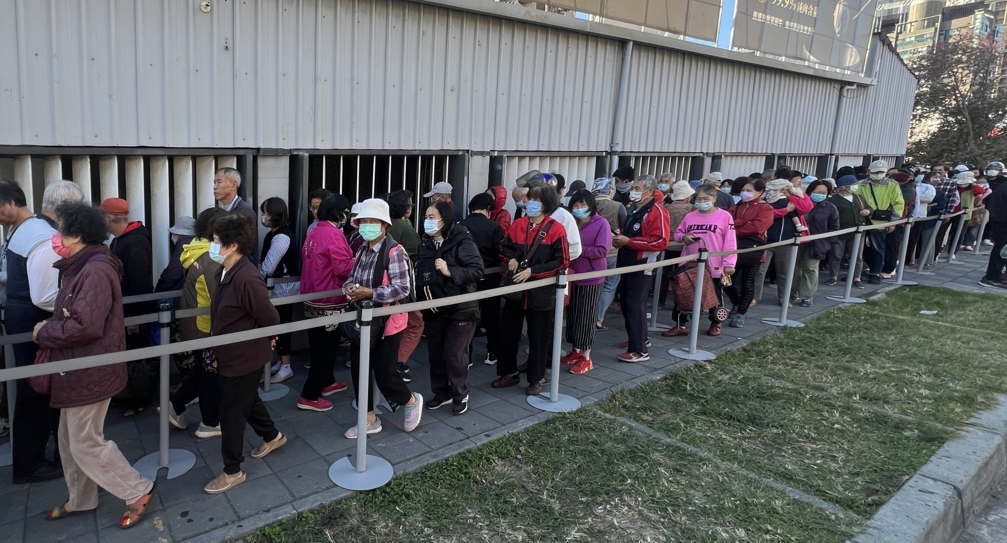 市府推廣食農教育果菜市場現空前人潮,六日上午經國路果菜市場,出現空前未有排隊雙龍,為現金五十元更換百元消費券,有人在婉轉蛇龍裡,排了近一小時才如願以償。