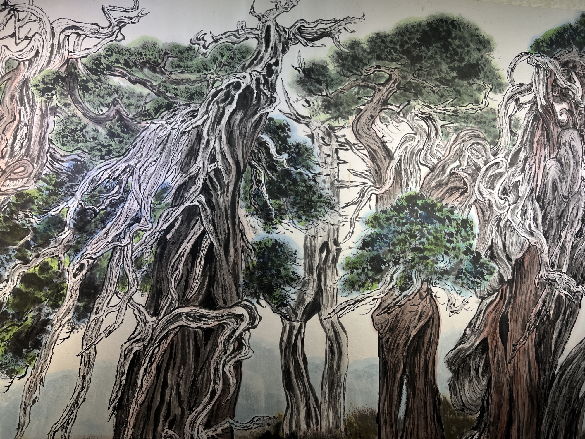 展覽共分為六大系列作品,「山水潑彩系列」及「自然景觀系列」展現了壯闊的山水意境以及對自然的深層思索;「松林品茗系列」以松樹為主題,透過細膩的筆觸展現松樹的堅毅與高潔;「荷花系列」則以簡潔的筆觸描繪出荷花的高潔,象徵君子之風,這些均彰顯了他不懈的藝術精神與堅韌的人生態度。