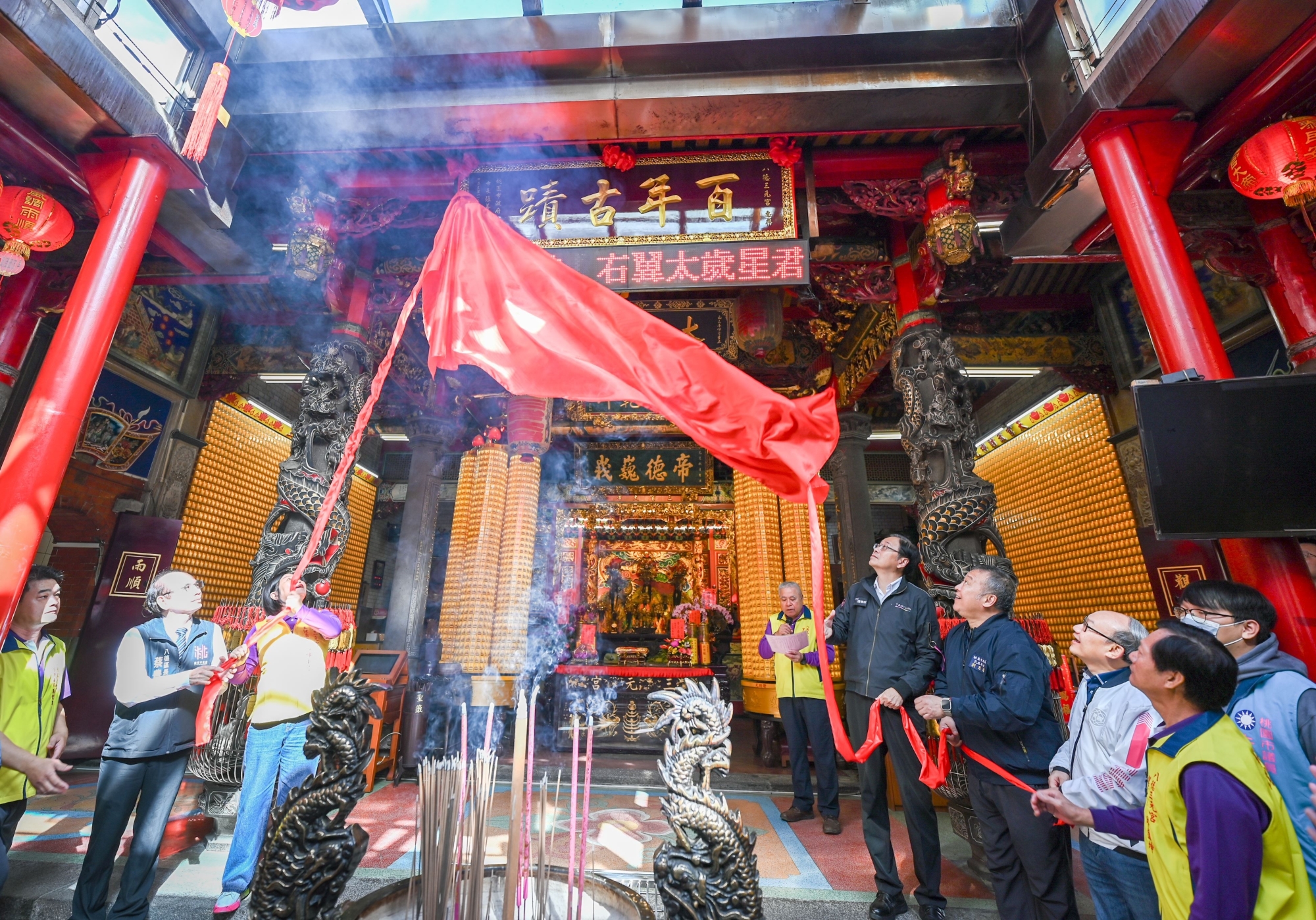 桃園市長張善政今(10)日上午前往八德區,出席「八德三元宮參香揭匾活動」。張市長表示,八德三元宮珍藏諸多藝術瑰寶,包括精湛的木雕、石雕及彩繪作品,皆出自傑出工藝名家之手,承載豐厚的文化底蘊,期盼三元宮未來發展成為一座宮廟博物館,讓更多人深入體驗臺灣宮廟文化魅力。