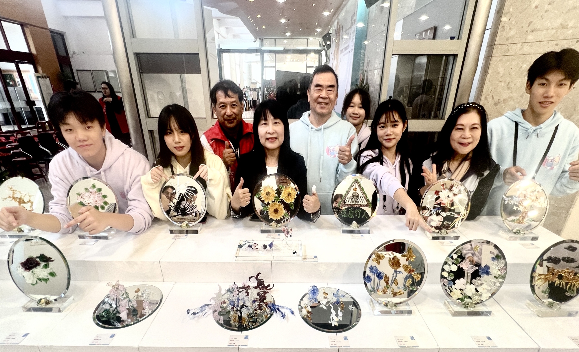 香山高中美術工藝科「朝花夕拾」年度畢業展,迎賓一同拾起滿懷三年青春點滴的朝花,品味香中學子對藝術的熱情與成長。玻璃工藝在風城紮根,指導老師國家工藝師許源榮極感欣慰,感謝校長洪碧霜支持文化藝術傳承。