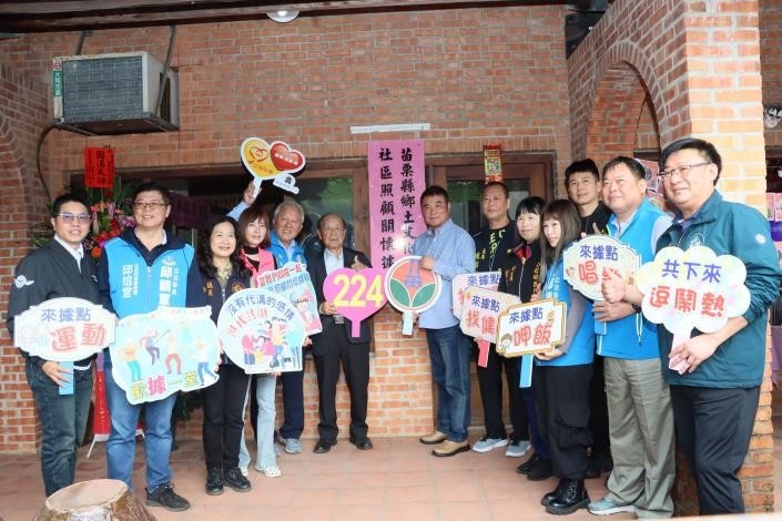 苗栗縣府於今日(11)上午假五穀文化村進行鄉土文化學會揭牌典禮,縣長鍾東錦與議員曾美露、徐筱菁、張志宇、鄉長何在鑫、主席趙興邦、黃鼎松教授、社會處長張國棟及地方仕紳等共同喜迎苗栗縣第224個關懷據點,實現長者在地老化的理想與目標。