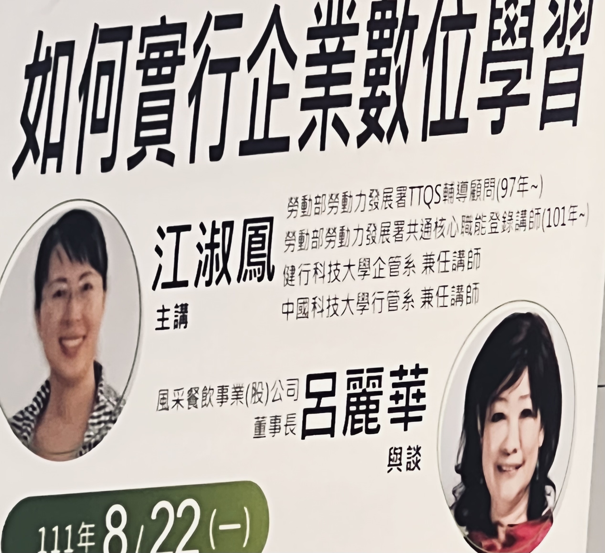 這次協助地方網絡專案服務計畫講座,講師江淑鳳演說主題,正迎合出席者心聲需求,題目是如何實行企業數位學習。江淑鳳由line說到fb,再轉入數位教學和視訊會議,綜合以企業經營及數位學習關係和現場與會廠商交流。