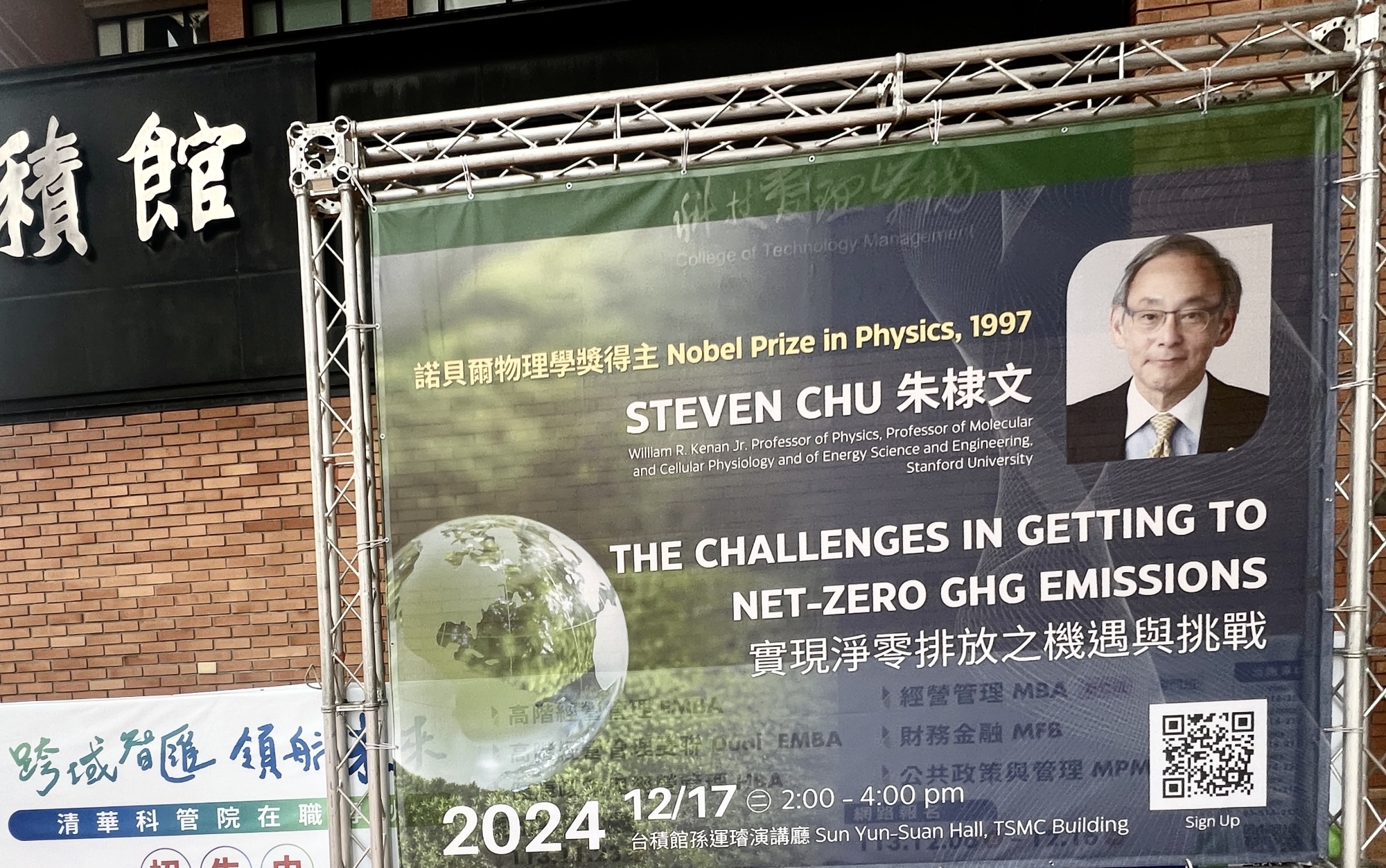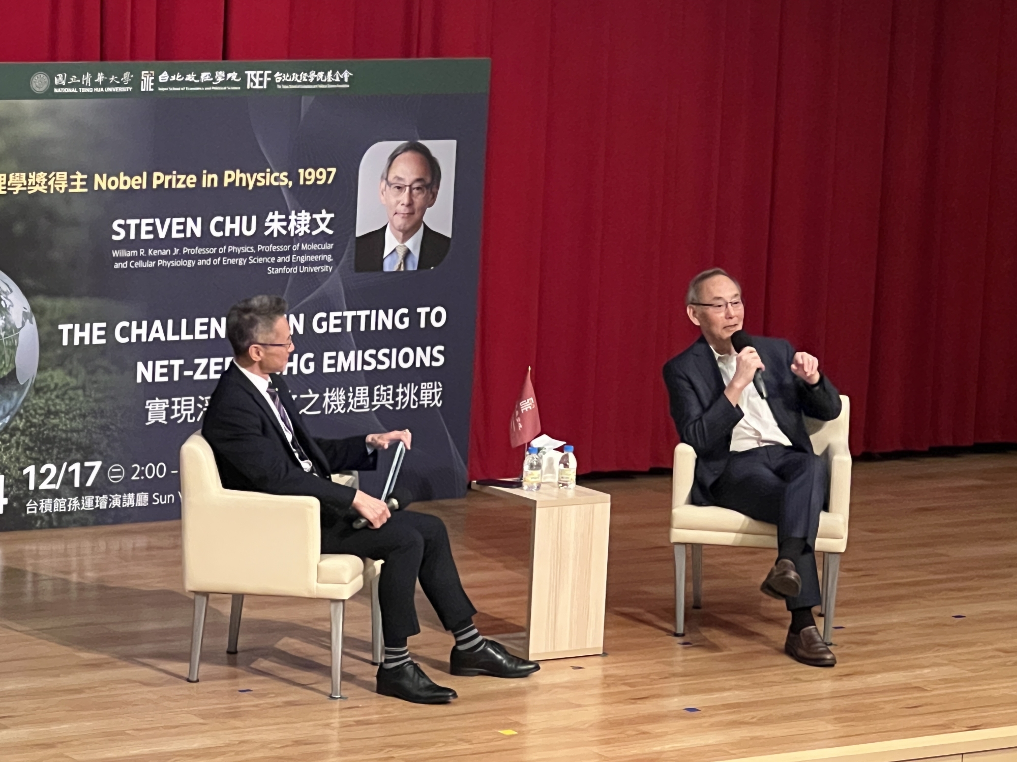 國立清華大學十七日邀請諾貝爾物理學獎得主、美國能源部前部長朱棣文(Steven Chu)以「實現淨零排放之機遇與挑戰」為題,對師生發表演講,並與校長高為元對談。