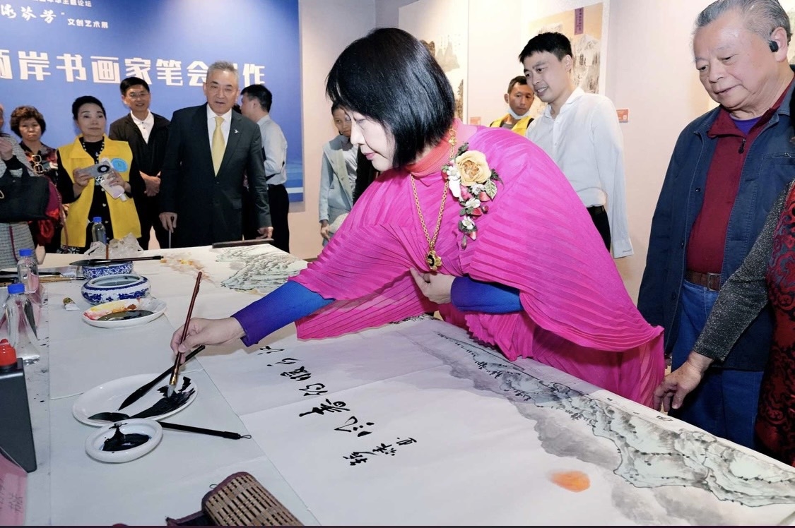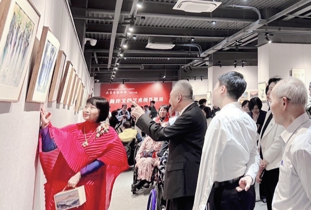 兩岸身心障礙藝術家相互鼓勵創新技藝,增進友誼的2024兩岸殘疾人士交流嘉年華主題論壇,十一日在大陸廈門蓮福美術館舉辦「共享藝術芬芳」聯展。中華身心障礙者自立更生創業協會榮譽理事長施雪紅藝術家,大放異彩成了聚焦人物,大陸網紅直播要角。