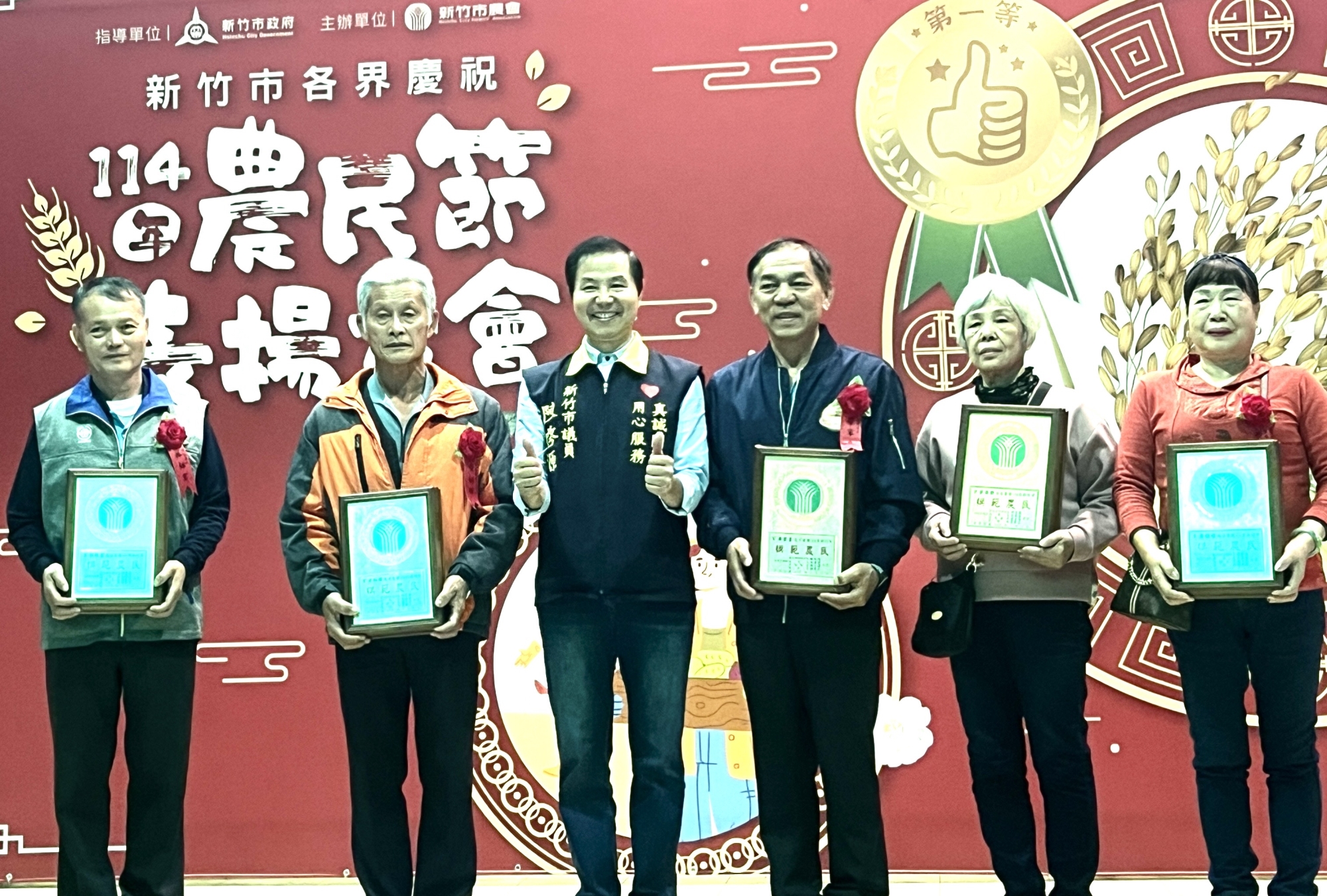 竹市各界慶祝114年農民節表彰人員近百位,竹市青草湖國小食農教育—鴨趣稻—,榮獲113年度全國四健會作業競賽組,幼初A組優等獎。市府和農會表達最崇高敬意,感謝他們辛勤奉獻,頒獎鼓勵致謝。