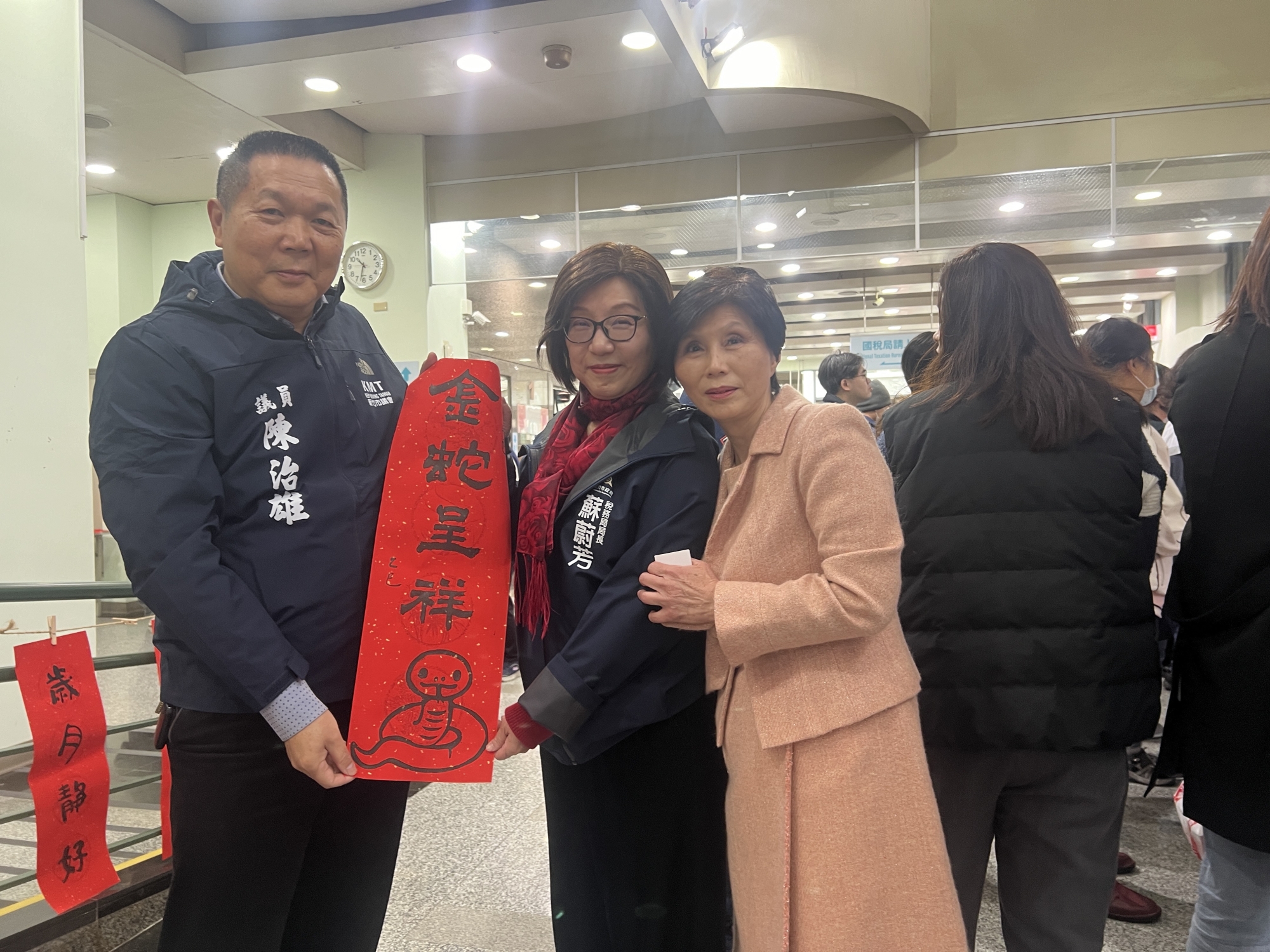 現場邀請張雙土、張美卿、顧瑞玲等 12位書法名家揮毫潑墨,除了免費贈送市民春聯外,更舉辦捐發票送好禮活動,代理市長邱臣遠到場向市民拜早年,並與民眾共賞一幅幅充滿祝福的春聯,現場洋溢著濃濃的年節氣氛。