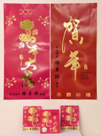 今年福袋以喜氣金蛇圖案搭配「蛇年大吉」、「苗栗迎瑞氣 蛇舞賀新年」字詞向鄉親賀年,縣府另印製兩款縣長春聯「賀年」、「蛇年大吉」共20萬5000份,已透過各鄉鎮市公所發送給鄉親,每家戶1份,款式隨機;年初一、初二則將由縣長伉儷及副縣長親抵各鄉鎮市廟宇發送新春福袋。