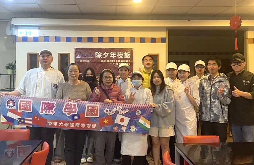 除夕夜吃團圓飯是每個人最期待的事,中華大學國際處及國際專修部為了讓留在台灣的國際生也能溫馨團聚,昨(27)日特地舉辦「除夕年夜飯」活動,由觀光學院的老師帶領烹飪科海青班的馬來西亞學生,大秀廚藝料理廣式炒飯、蝦醬空心菜、泰式蝦球等多元料理,讓外籍生在校園內,也能感受濃厚的年節氣息與溫暖!