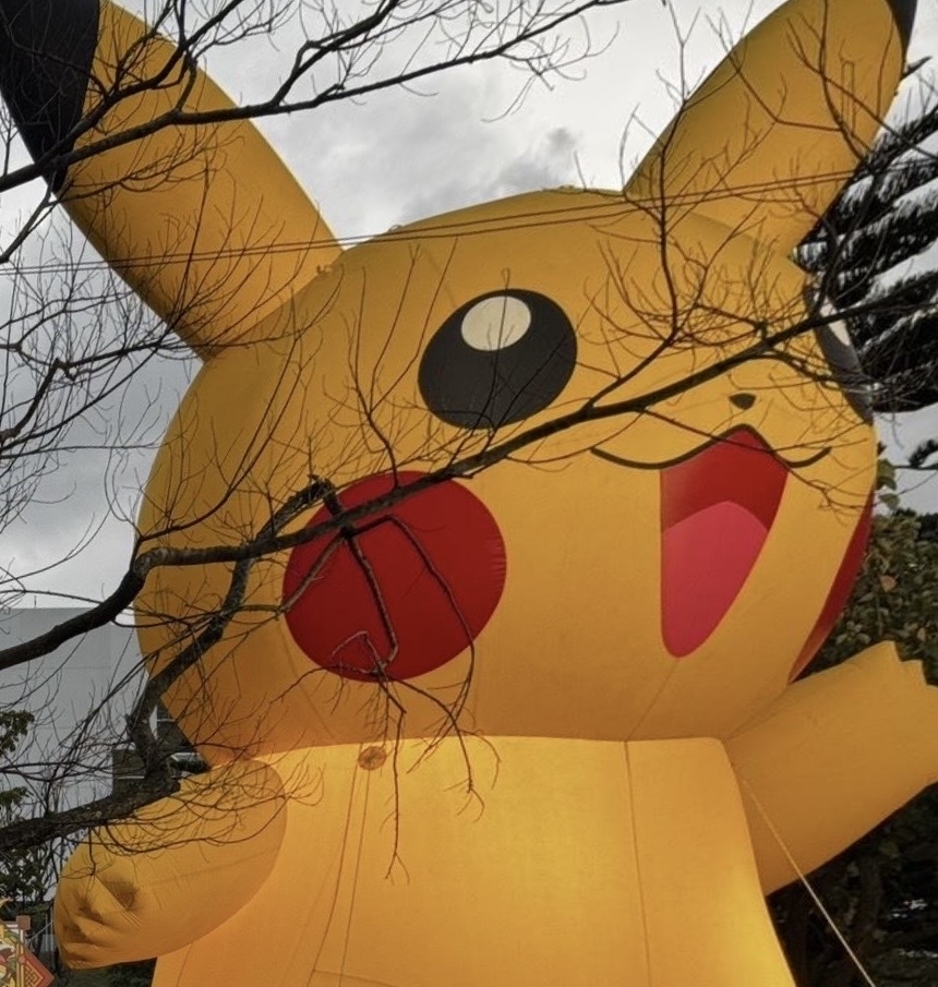 赴桃園觀賞台灣燈會花燈好消息!桃園地區風速減緩,巨型充氣進擊巨人、卡比獸、皮卡丘造形花燈理直氣壯,向遊客招手歡迎光臨。