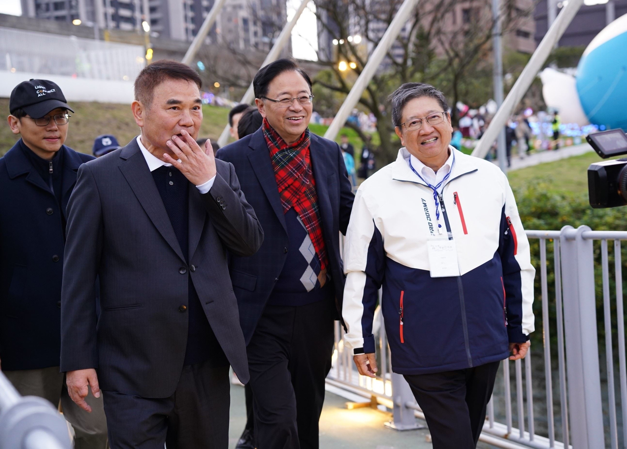 右起楊文科、張善政和鍾東錦齊聚台灣燈會  圖∕竹縣府