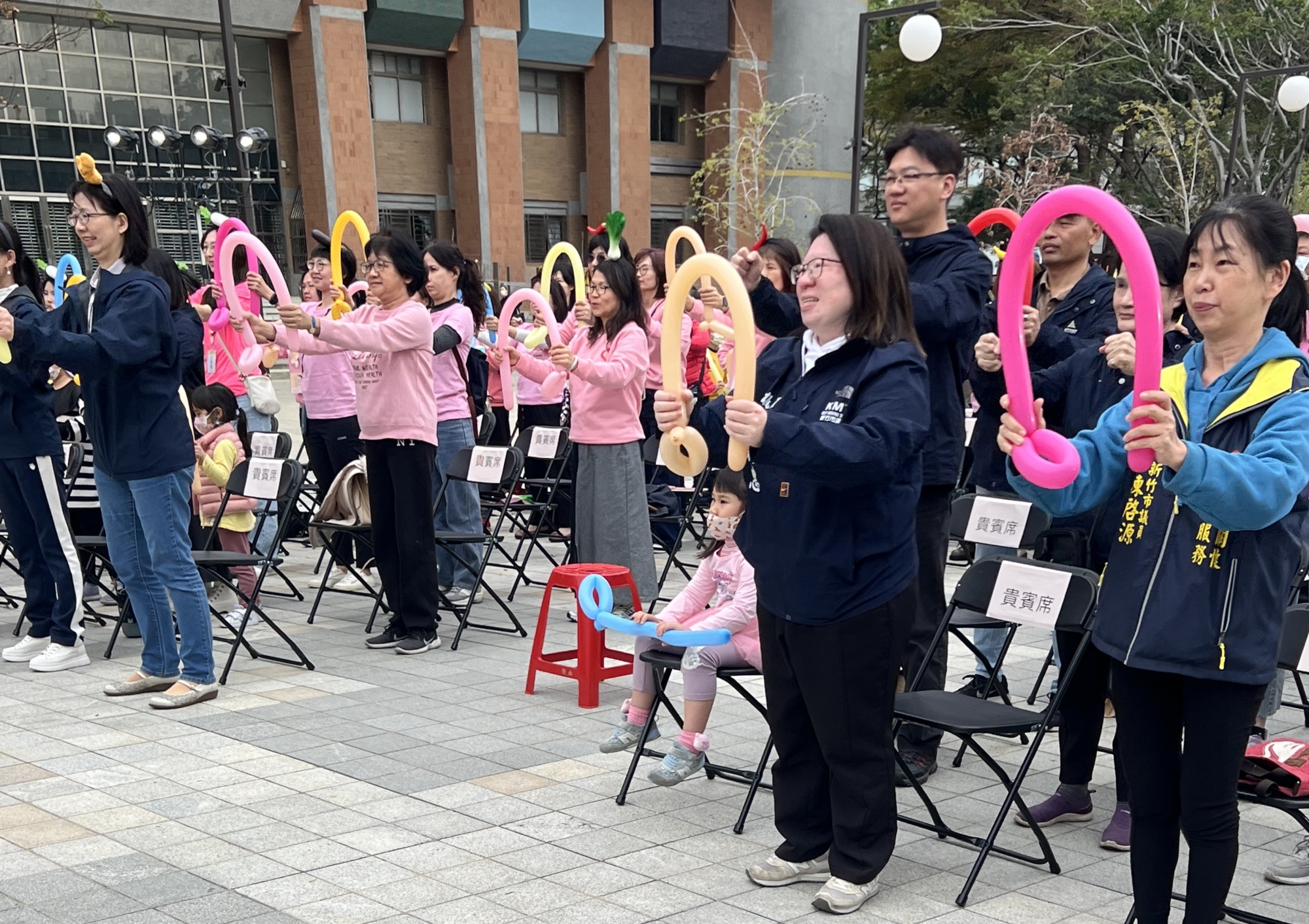市府張治祥秘書長代表出席,與百位民眾共同歡跳「營養加滿打氣操」,現場充滿嘉年華的歡樂氣氛,活動還有各專業領域營養師及友善小農設置的互動宣導攤位,讓民眾能深入了解健康資訊,推廣「健康吃、快樂動、食在地、享當季」的健康理念。