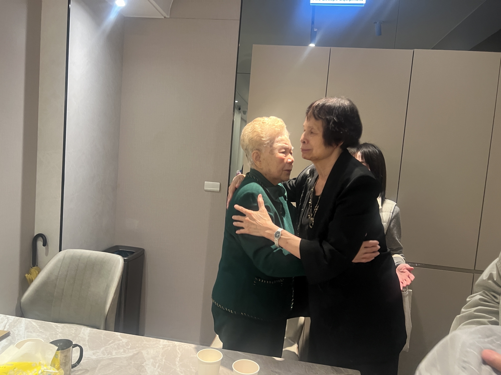 紀政見到往昔熟悉師母柯媽媽出現眼前,很感性的自然上前一步,極為貼心和師母相擁,兩人半晌都沒有言語,柯媽突然脆弱泣不成聲,頻頻擦拭止不住湧出的淚水。