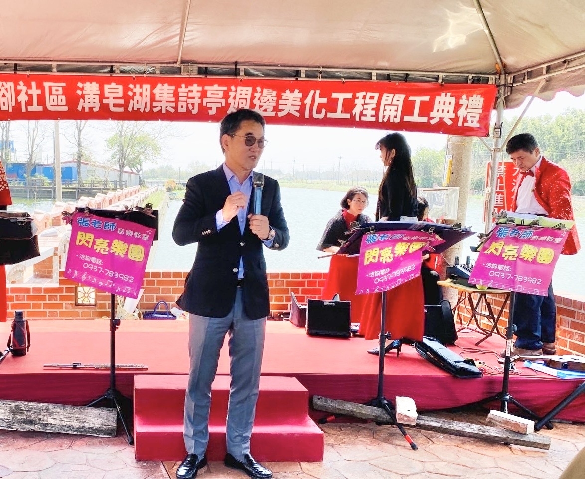 長期關注雲林農村發展的立委劉建國,出席水林鄉尖山腳溝皂湖集詩亭週邊社區綠美化工程開工典禮,與農村水保署南投分署署長傅桂霖、雲林縣議員蔡孟真、蔡岳儒、蔡永富、水林鄉農會總幹事 吳綉蘋、文正國小校長 吳忠勇、鳥松國中校長 林忠斌、水林鄉民代表 陳盈璇、尖山村村長 潘志誠以及其他社區居民共同見證這項重要工程的啟動。