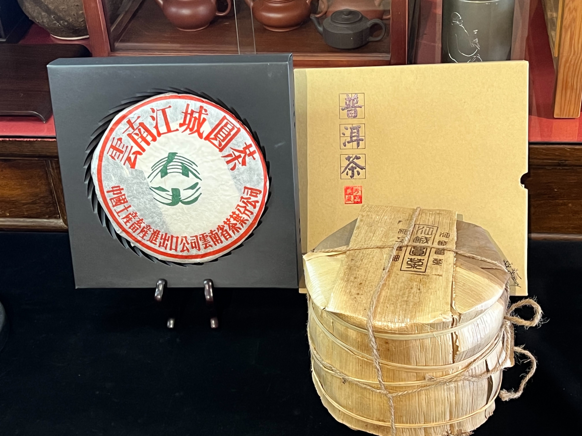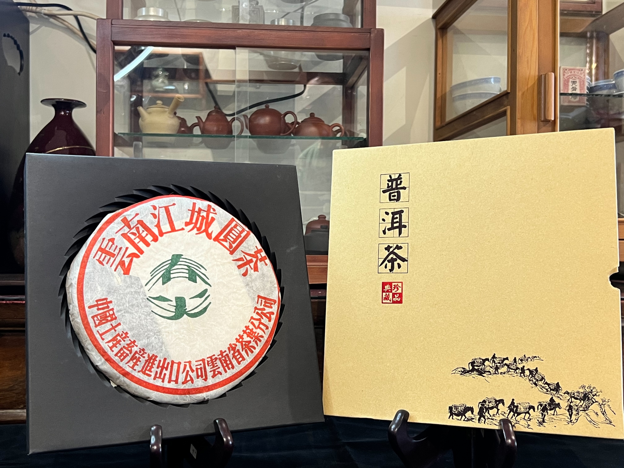 精美的盒裝普洱茶餅,因應即將到來的中秋節,月圓人圓、團團圓圓,用來作為秋節禮物非常應景;茶商業者楊文欽表示,這一批茶餅是2005年購入的雲南江城圓茶,是以春天摘採的嫩芽葉尖製作。在當時收購價每片就超過台幣千元,經過十幾年的後發酵,味道更趨醇厚,如果照每年15%的增值空間計算,現在市價應該已經超過4千元了。