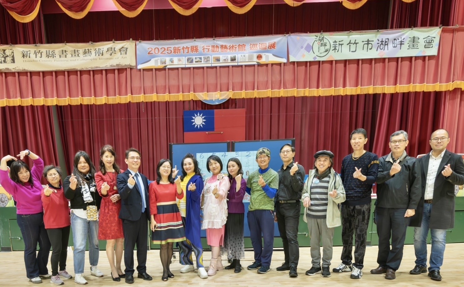 新竹市湖畔畫會連續兩年熱忱投入,由竹縣文化局攜手新竹縣書畫藝術學會舉辦的「行動藝術館」7校巡迴藝術展,自3月遊動至11月。新竹縣長楊文科表示,行動藝術館除了展示名家作品,更結合各校藝術與人文等相關課程,啟發學生對藝術的興趣,增加美感經驗及鑑賞力,讓美學教育從小扎根。