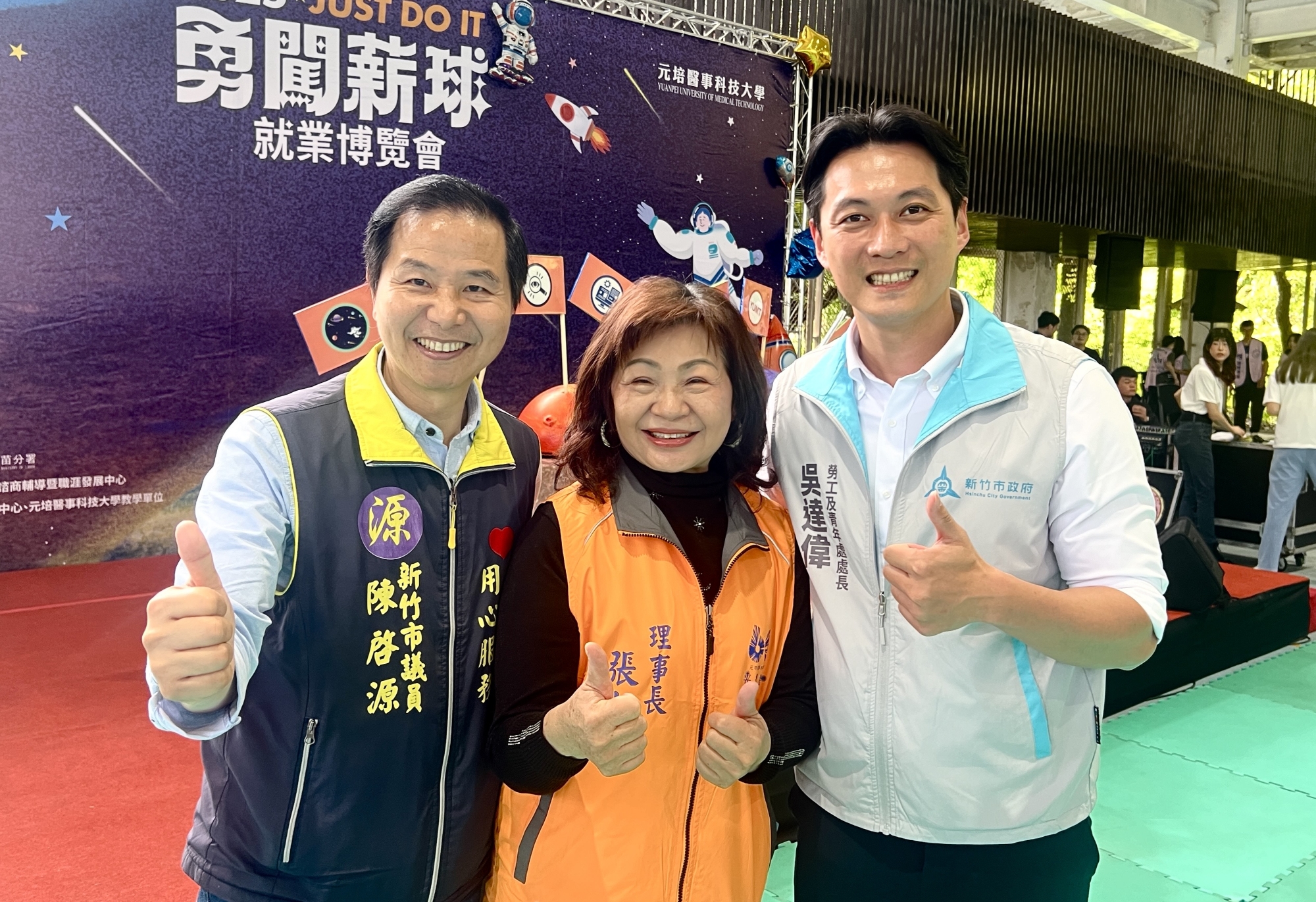 元培醫大校友會理事長理事長張淑珠和理監事,新竹市政府勞青處及新竹就業中心,三個單位分別設攤,在會場賣力投入媒合服務,深受好評。